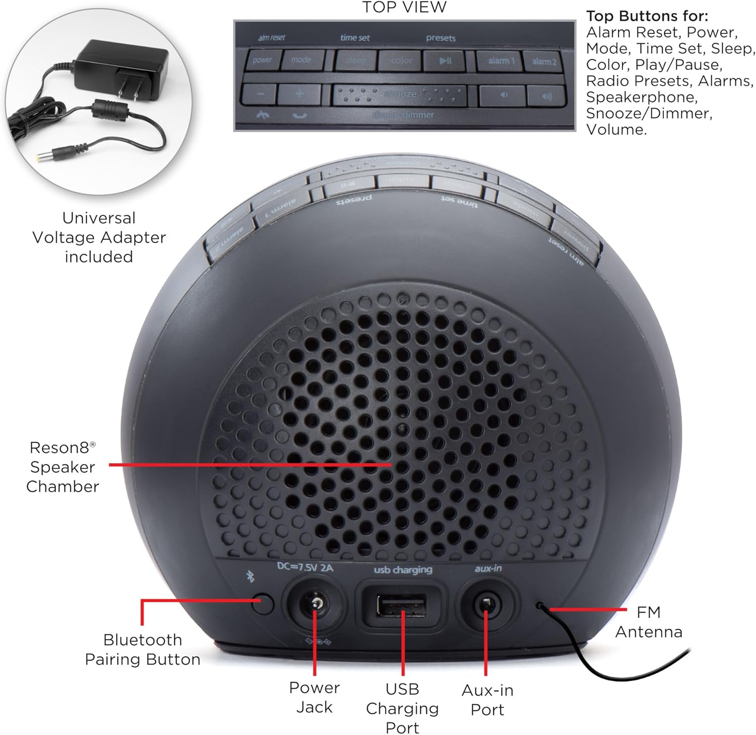 - Alarm Clock Radio: Customize your sleep routine with dual alarms that can be set and used independently. Wake to Bluetooth audio, FM radio, or built-in tone. Select up to 6 FM radio presets for easy access to your favorite stations.