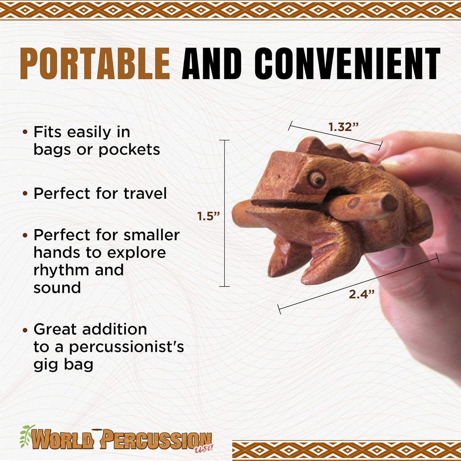 Deluxe Small 2" Wood Frog Guiro Rasp - Percussion Musical Instrument Tone Block - Wooden Instrument with Stick, Noise Maker by World Percussion USA