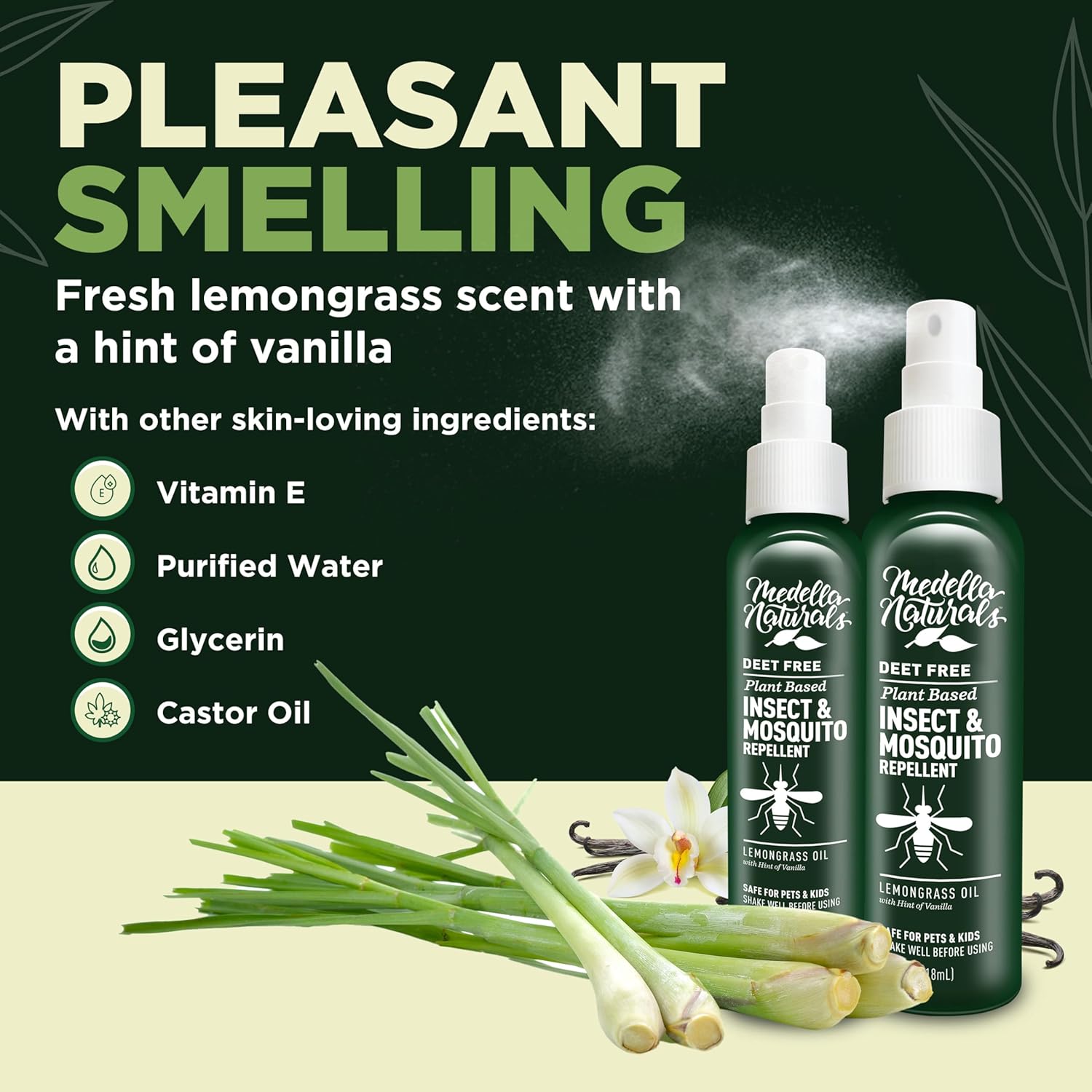 - Naturally Derived Ingredients: Made In The Usa From Skin-Loving Ingredients Like Lemongrass Oil, Vitamin E, Purified Water, Glycerin, Castor Oil, And A Hint Of Vanilla, Which Gives This Spray Its Pleasant Smell.