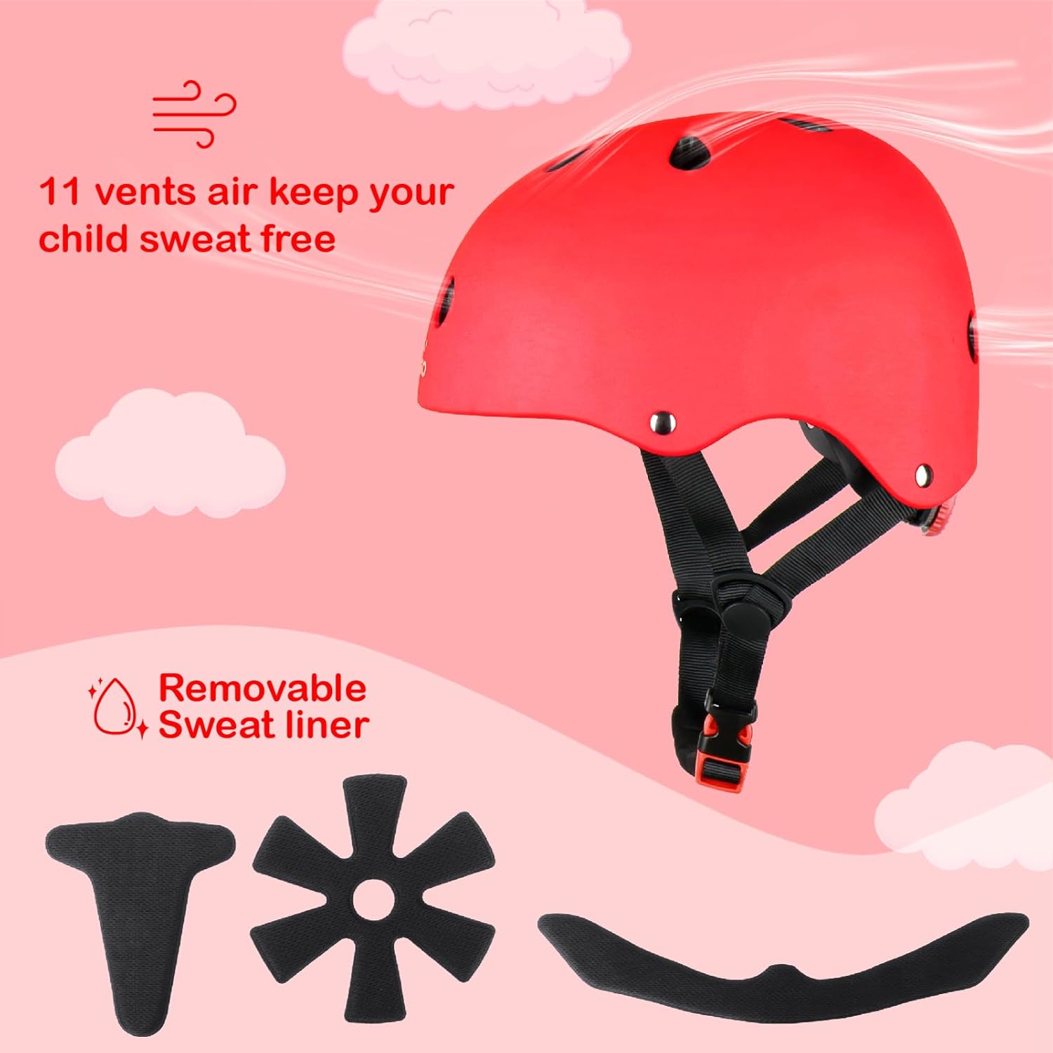 KAMUGO Kids Bike Helmet, Toddler Helmet for Ages 2-8 Boys Girls with Sports Protective Gear Set Knee Elbow Wrist Pads for Skateboard Cycling Scooter Rollerblading