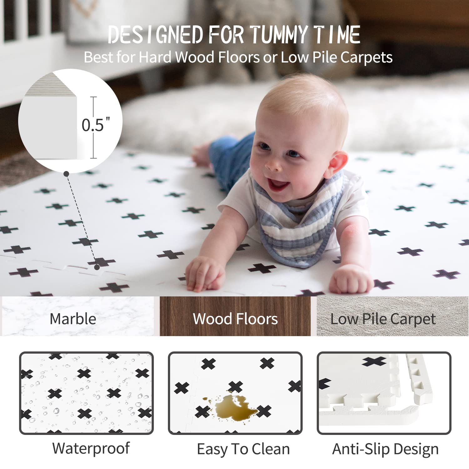 - ✅ PERFECT FOR YOUR BABY’S SENSITIVE SKIN - Yay! Mats baby floor mat tiles are made of high density hypoallergenic foam, perfect for infant tummy time and learning to crawl. 100% non-toxic - free of harmful lead, BPAs, and phthalates. Our floor mats for kids are designed to help visual development while providing an elegant and functional play area, meeting the highest safety standards for EVA foam worldwide. Rated for newborn babies and above, great foam play mat for toddlers