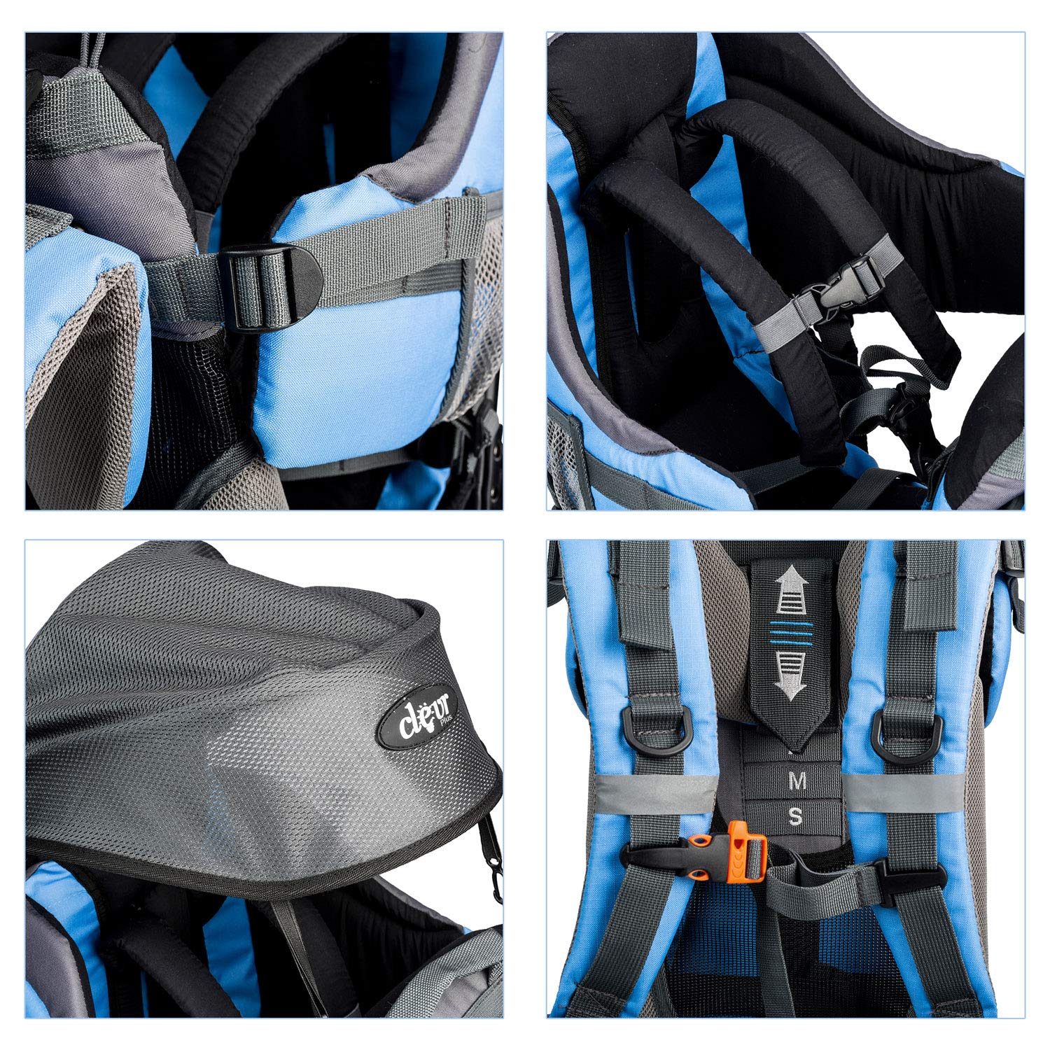 ClevrPlus Canyonero Camping Baby Backpack Hiking Kid Toddler Child Carrier with Stand and Sun Shade Visor, Blue
