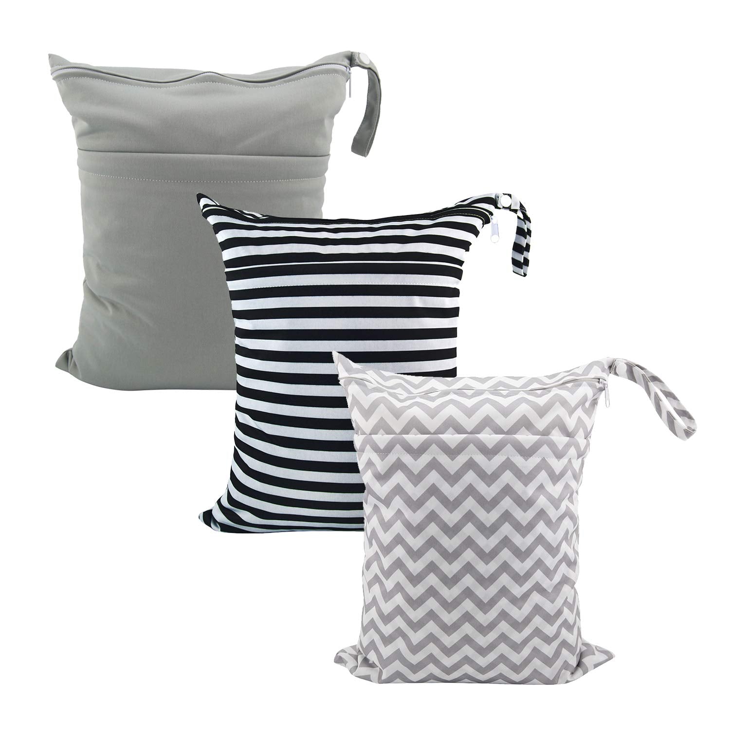 ALVABABY 3pcs Baby Cloth Diaper Wet Dry Bags Waterproof Reusable with Two Pockets Travel Beach Pool Daycare Soiled Baby Items Yoga Gym Bag for Swimsuits or Wet Clothes M Size 3L-ZM01