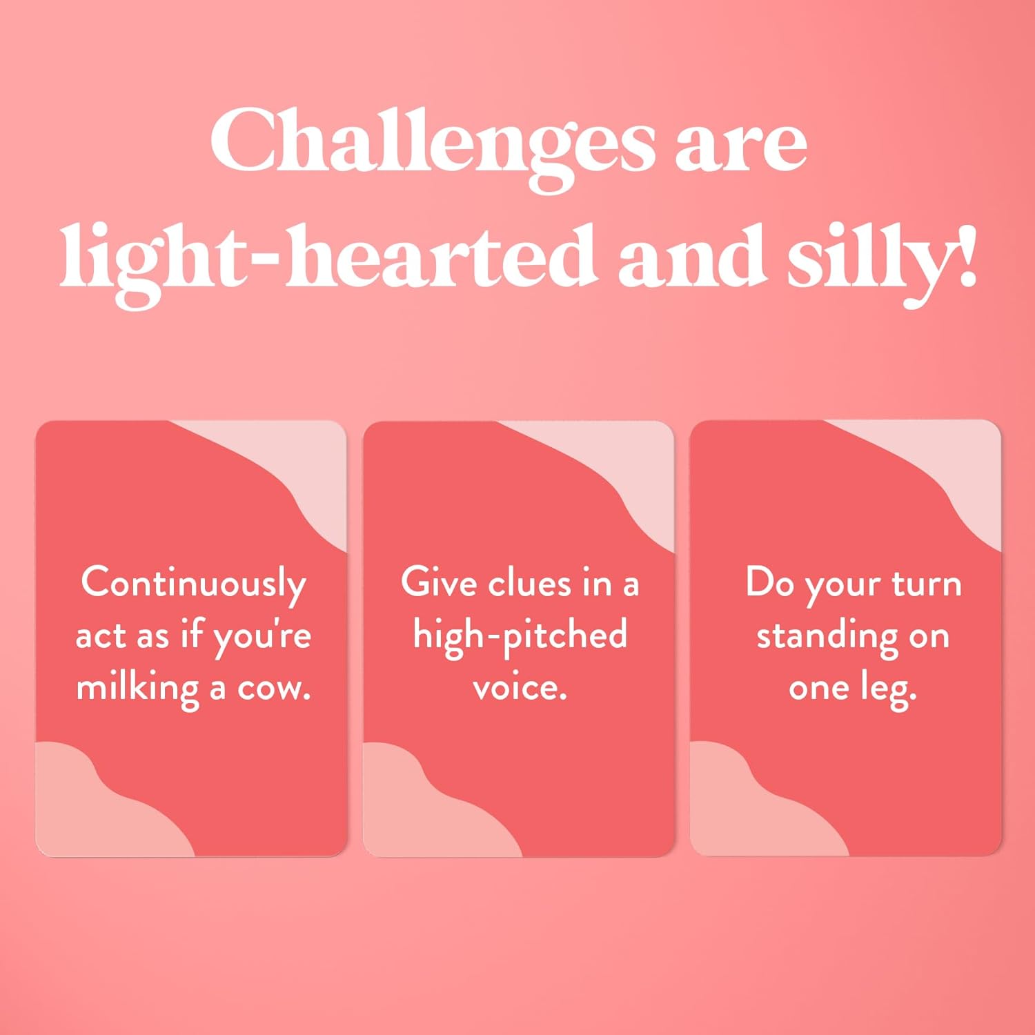- 💃 DO SILLY CHALLENGES: Slow down the other team by making them do addiitonal challenges while giving clues such as "talk in a British accent" or "act like you're milking a cow."
