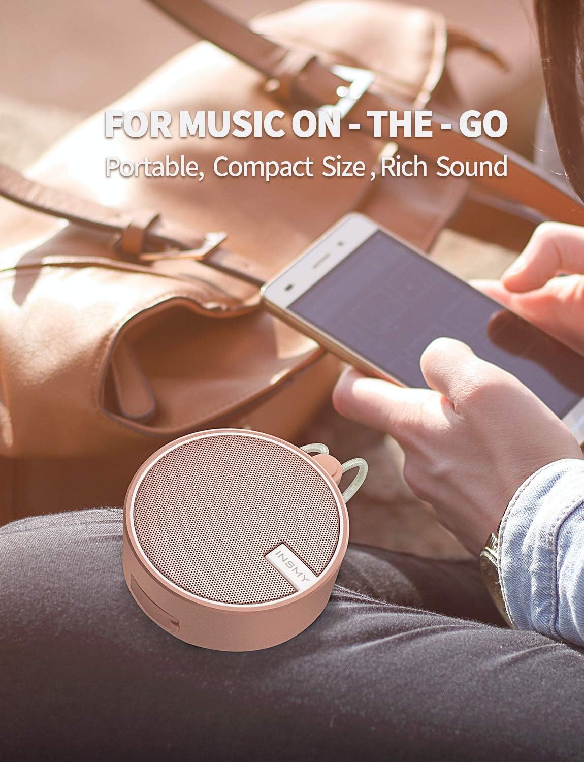 - 【MORE BASS LESS SPACE BIG SOUND】 This INSMY wireless speaker is built with an active deliver and extra passive radiator in this compact small size, delivering immersive and stereophonic audio for you from the beach to the bathroom. It's really loud, pure, musical, and dynamic. The small portable speaker impresses with a loud and clear sound performance even under showering noise.