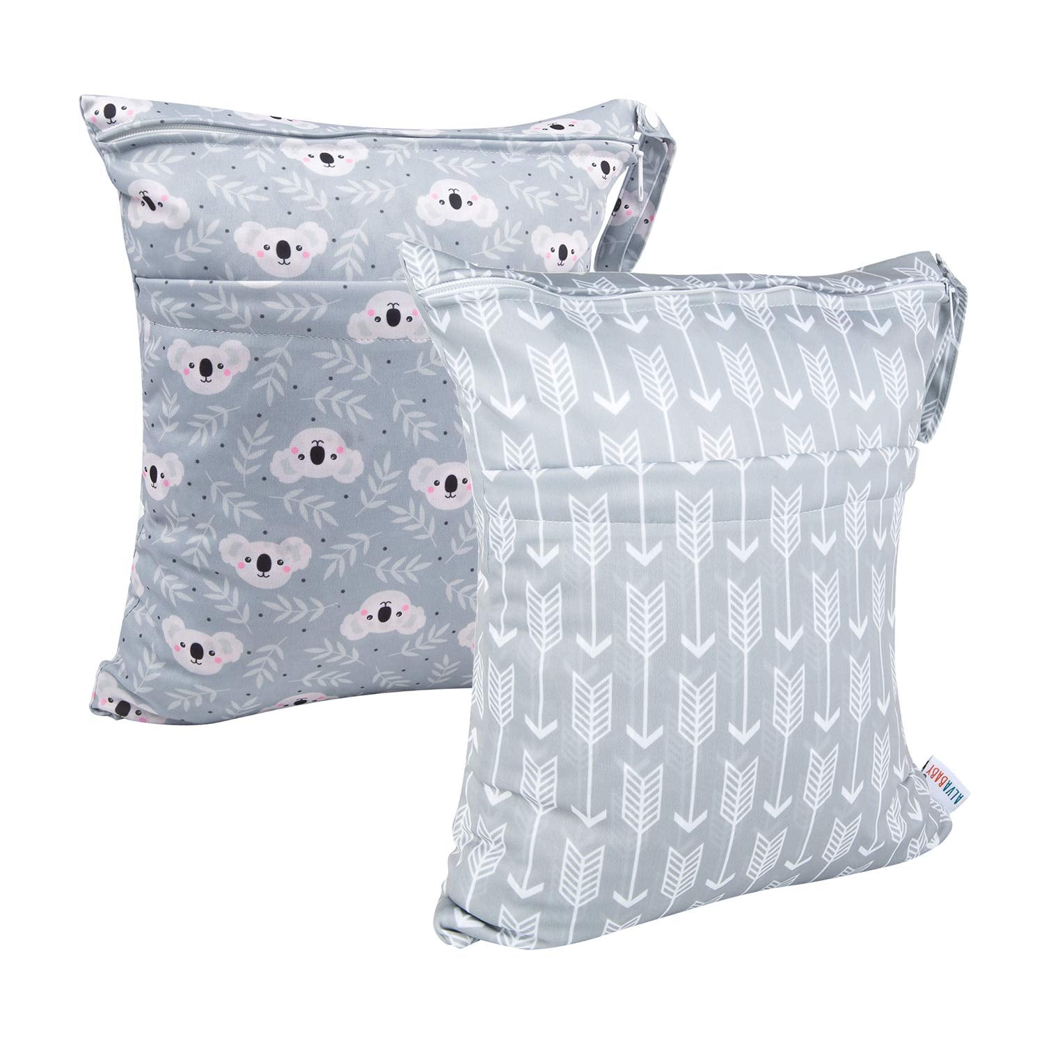 ALVABABY 2pcs Cloth Diaper Wet Dry Bags Waterproof Reusable with Two Zippered Pockets Travel Beach Pool Daycare Soiled Baby Items Yoga Gym Bag for Swimsuits or Wet Clothes L-YX3536