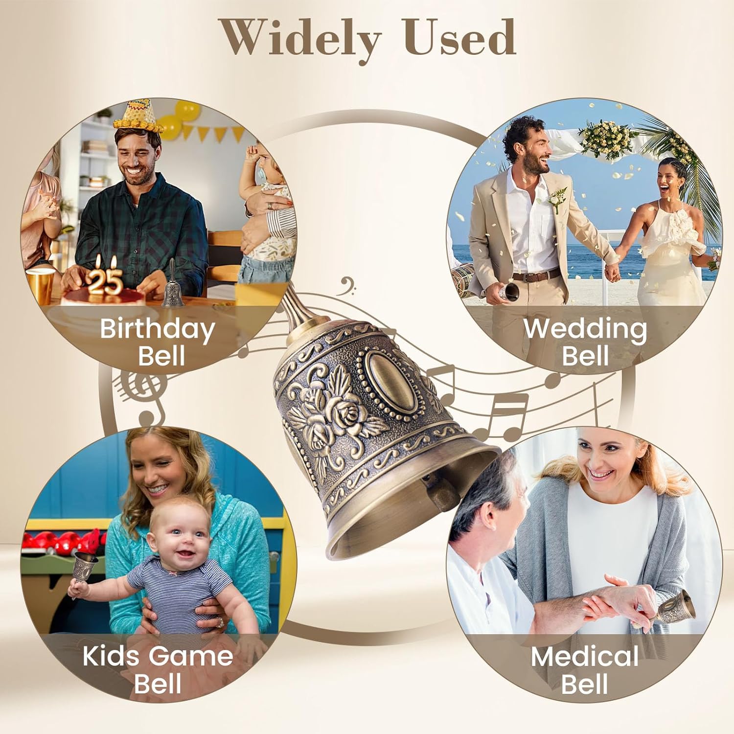 - EYE-CATCHING - Our Extra-Loud and Multi-Purpose Hand Call Bell comes with floral design, vintage style. Vivid patterns engraved on the bell are riveting, enthralling and appealing.