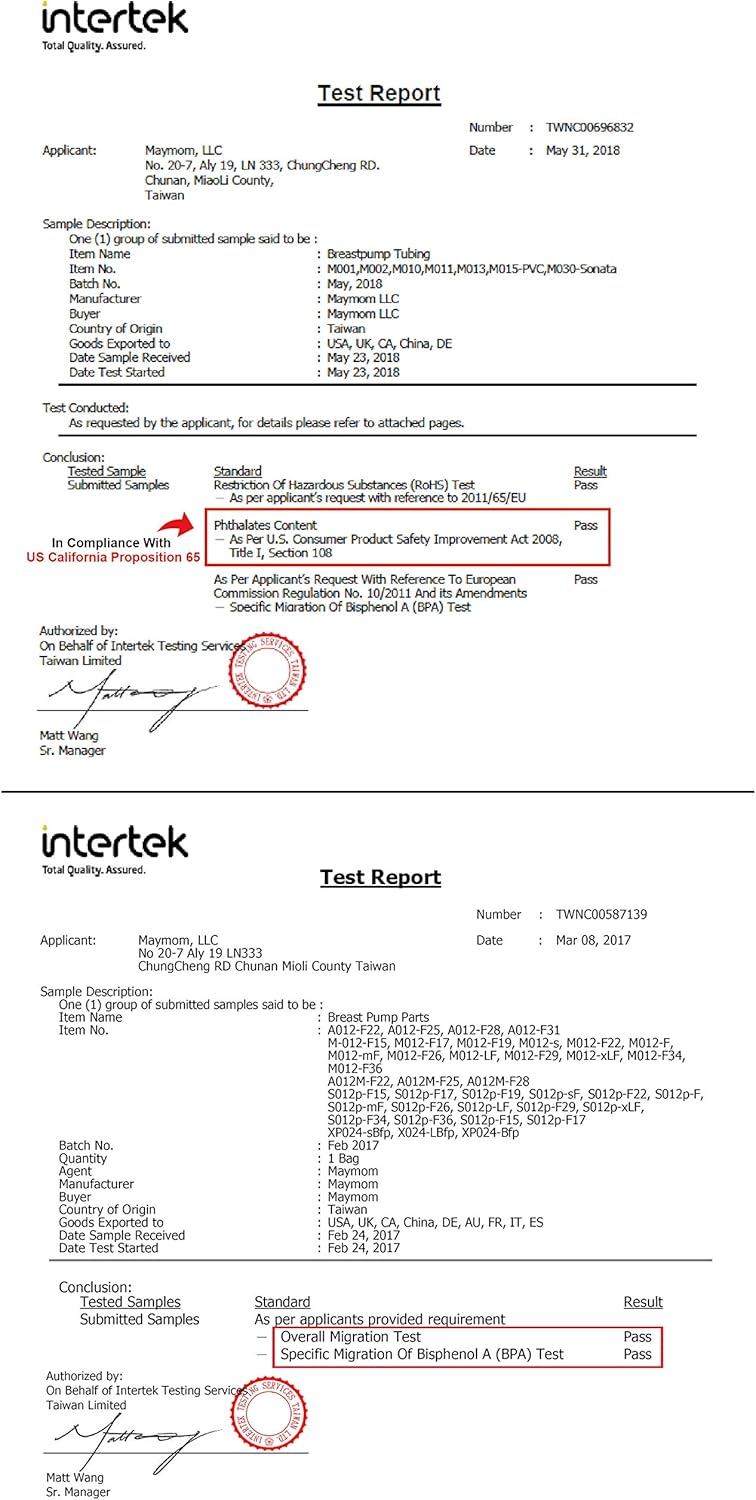 - MADE WITHOUT BPA. All products are inspected and in compliance with US FDA and EU standards for plastic that contacts food. Refer to Maymom test reports for detail.