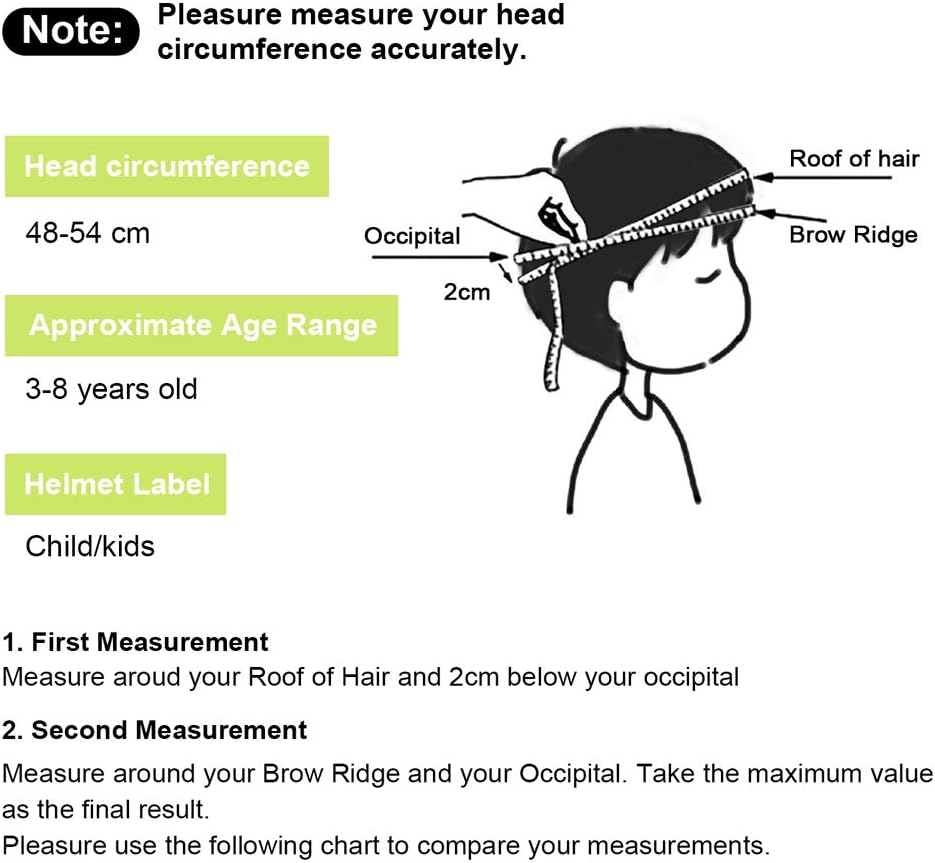 - Kids Bike helmet: Suitable for 3-8 years old kids and toddlers with helmet size: 48-54 cm / 18.9-21.3". This kids bike helmet is easily adjustable for a snug fit, it could grow with your child for few years.