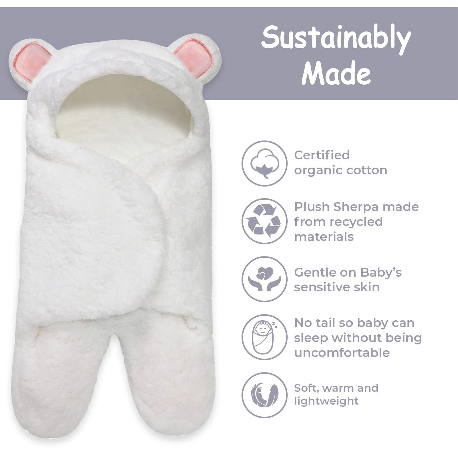 - QUALITY PLUSH SUSTAINABLE FABRICS- Made with organic cotton and incredibly soft Sherpa made from recycled polyester, making our baby swaddle blanket the softest around! Designed in the USA.