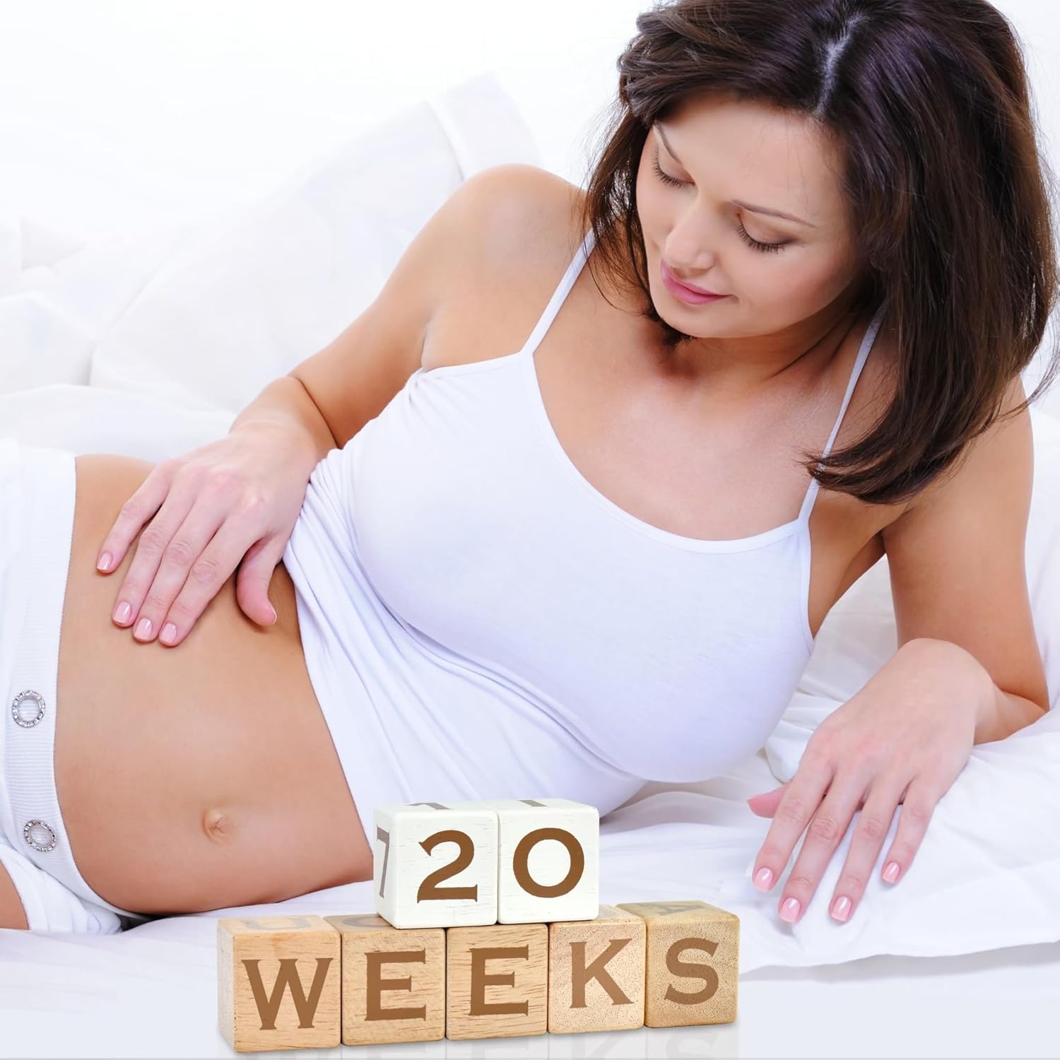 - ECO SOLID WOOD: A set of 16 solid wood letters blocks printed with large numbers 0-9, A-Z. Proportional distribution of letters to compose hundreds of words, most baby names and significant milestones. Possible to make number combinations of age range from birth to adult. Awesome for weekly pregnancy countdown or tracking baby's important milestone. Each cube is 1.4 x 1.4 x 1.4 inches.