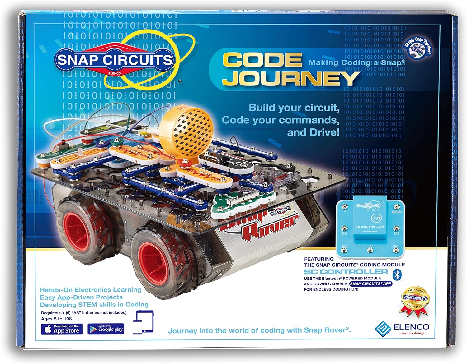 - LEARN CODING: Build your electronic circuit on your Snap Rover grid, open the smartphone app and code your mission! Create patterns of lights and sounds while controlling your rover! Includes over 20 Snap Circuits parts including the new SC Controller!