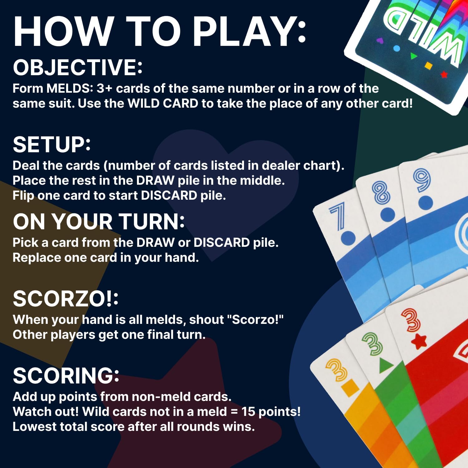 - SCORZO - This Regal game adds exciting twists to the much-loved, classic Rummy. A great card game that both kids, adults, friends, and family can enjoy!