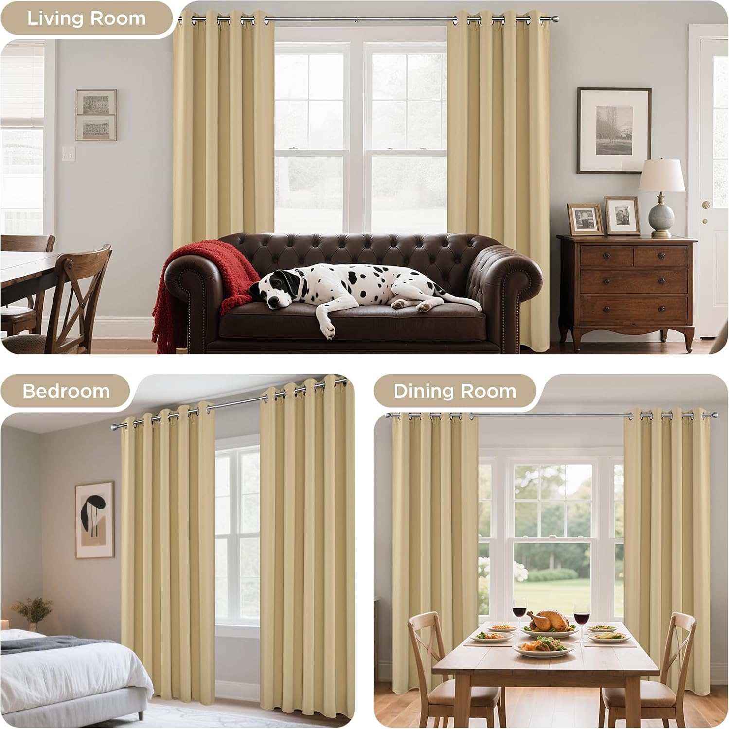 Joydeco Blackout Curtains 95 Inch Length 2 Panels Set, Thermal Insulated Long Curtains& Drapes 2 Burg, Room Darkening Grommet Drapes for Living Room Bedroom Window (W52 x L95 Inch, Beige)