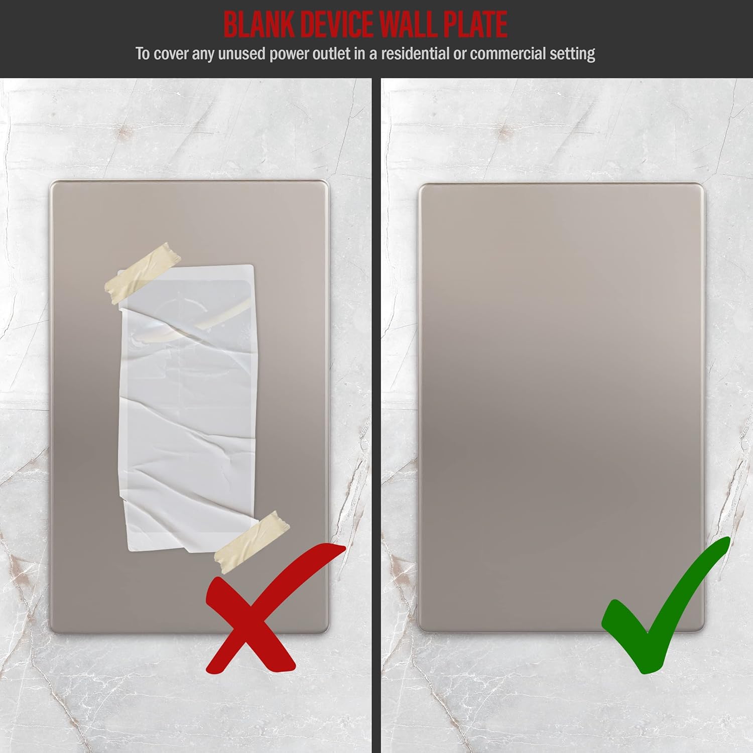 ENERLITES Screwless Blank Wall Plate, Child Safe Blank Device Outlet Cover, Standard Size, 1-Gang 4.68" x 2.93", Polycarbonate Thermoplastic, UL Listed, SI8801-NK, Nickel