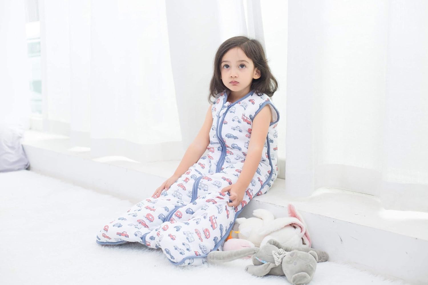 - Size and Patterns: The sleeping bag is 39" long and suitable for 2-4T toddlers. Please refer to the size chart for more information. For both boys and girls, we offer three patterns to choose from: rhinoceros, cars, and small fish. Suitable warmth for your baby in room temperature between 61℉-68℉