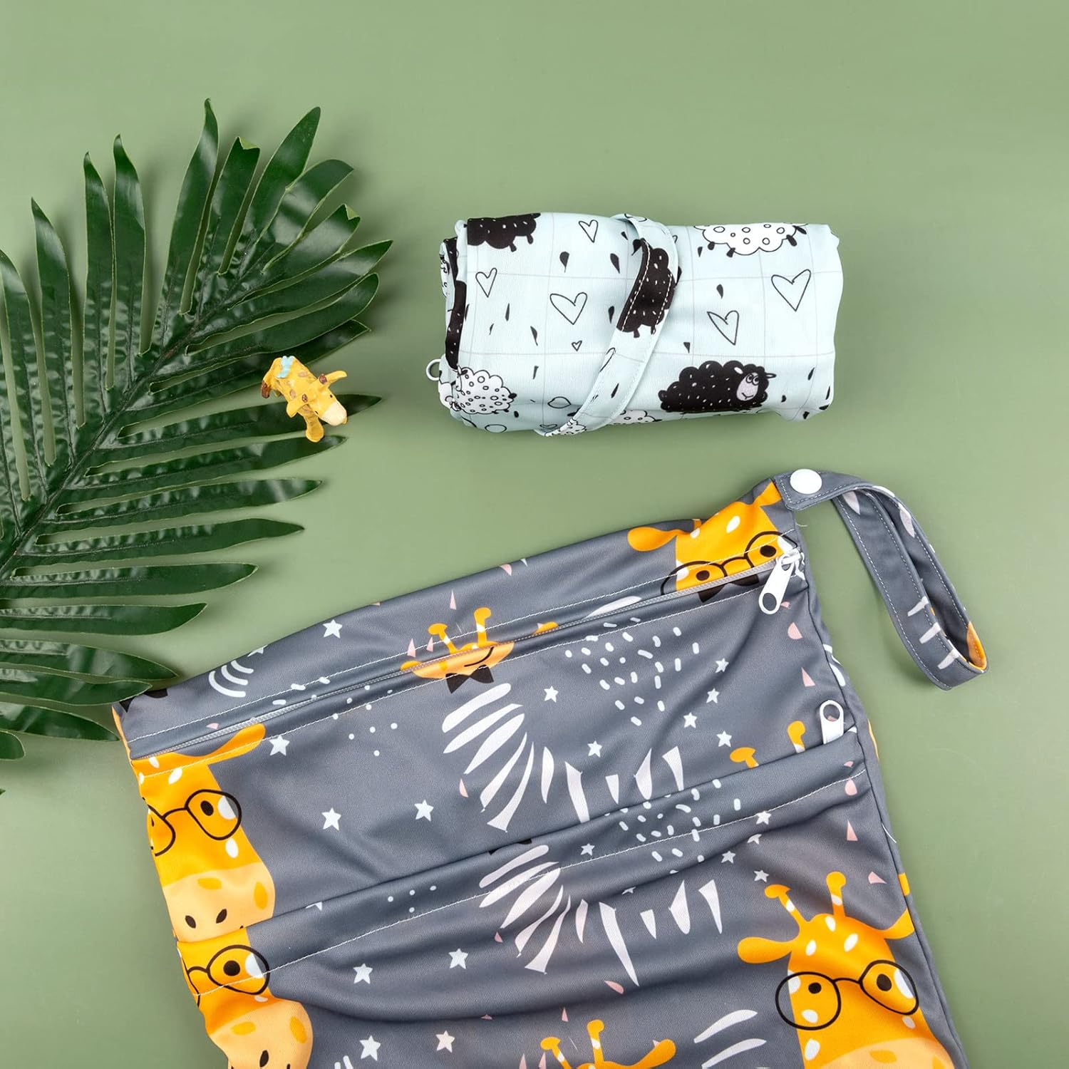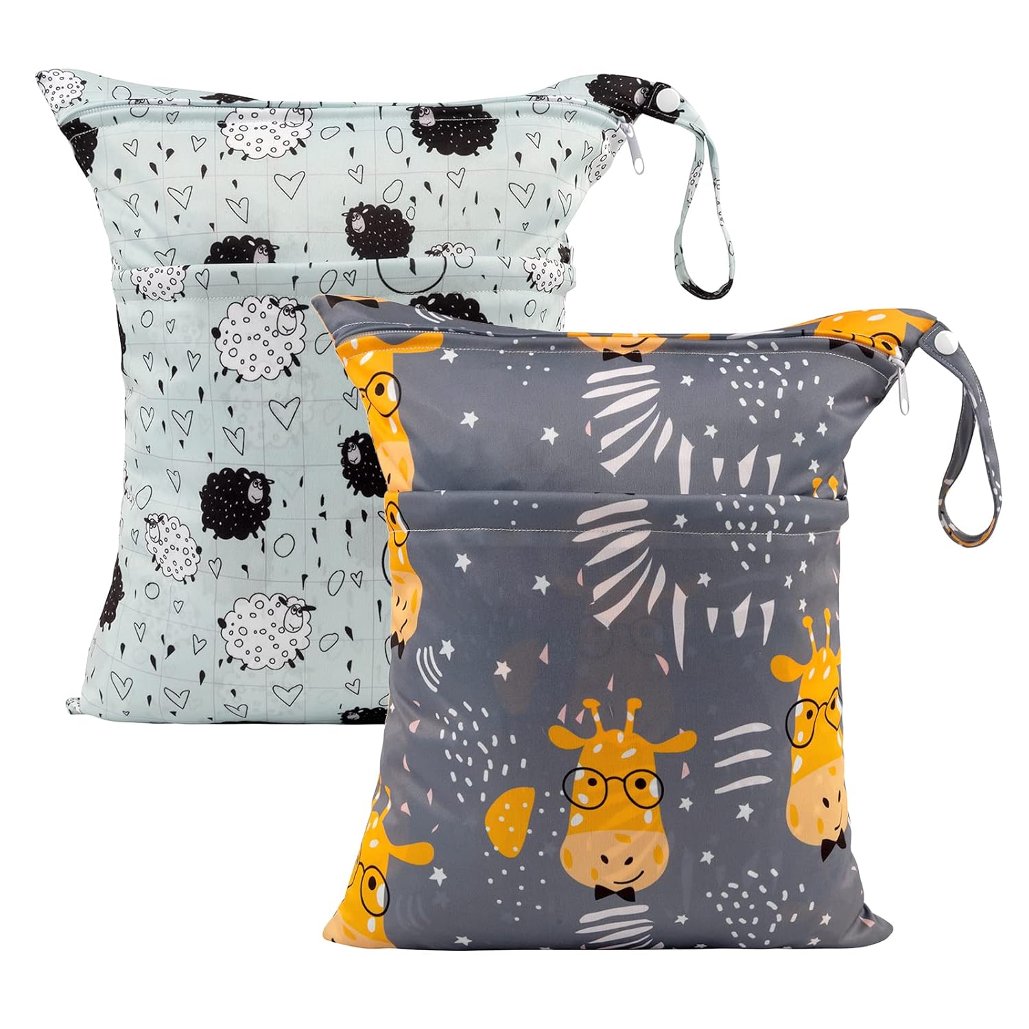ALVABABY 2pcs Cloth Diaper Wet Dry Bags Waterproof Reusable with Two Zippered Pockets Travel Beach Pool Daycare Soiled Baby Items Yoga Gym Bag for Swimsuits or Wet Clothes LZ1920