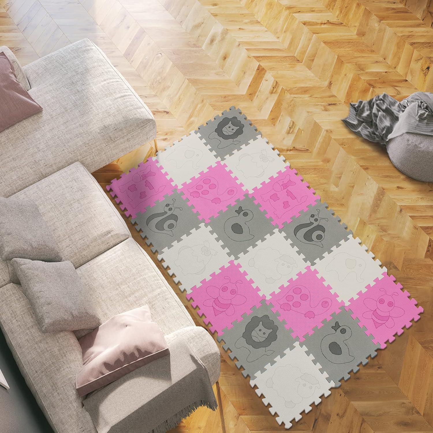 - Animal Laser Pattern Puzzle Mat - The non-removable animal laser pattern is for the baby to learn to play, effectively prevent the baby from suffocating, and make storage easier.