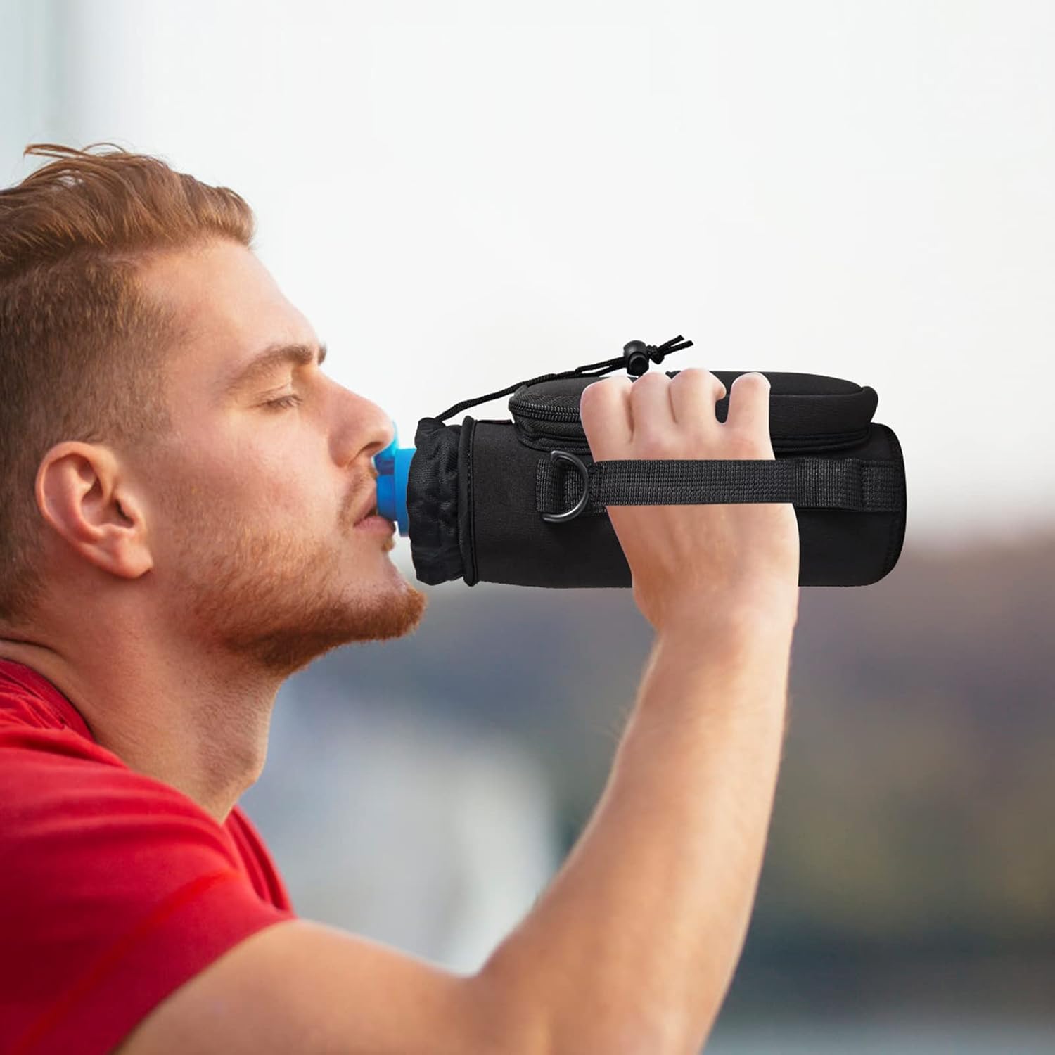• icolor Sports Wide Mouth Bottle Accessories for Hiking Travelling Camping: Have Adjustable Padded Shoulder and Handle Strap. It is with 2 zipper Pockets too,The small zipper pocket is for cash and card, the large zipper pocket is for smartphone, keys & other.