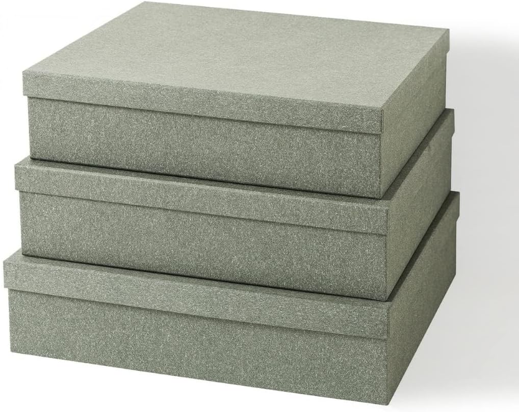 - QUALITY CRAFTSMANSHIP IN VARIED SIZES: Constructed from premium kraft paper, this nesting set can be used as photo storage boxes and storage box options, providing elegant and durable storage solutions for any home setting. The set includes Small (13" x 11.8" x 3.3"), Medium (14" x 12.4" x 3.5"), and Large (14.7" x 13" x 3.7") boxes.