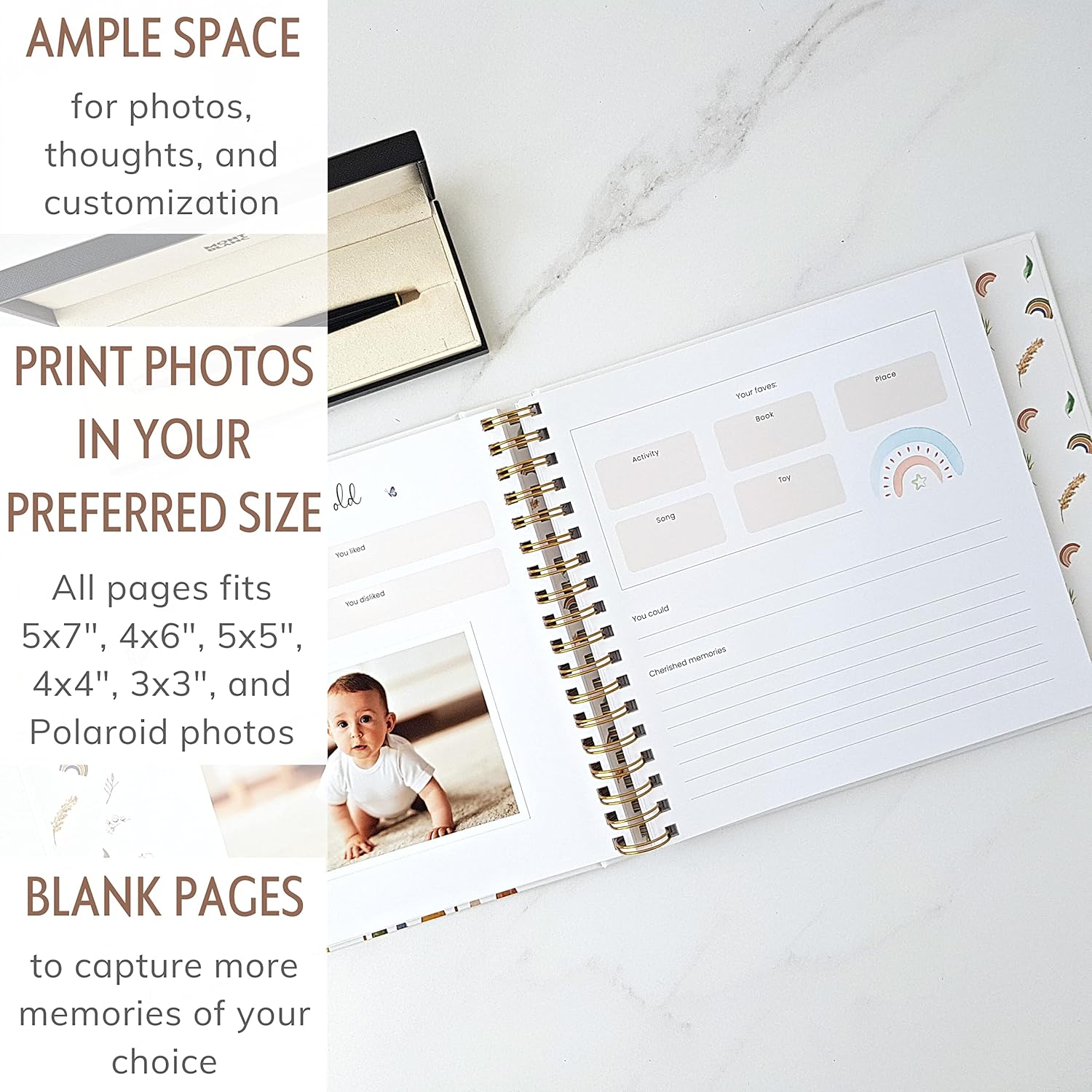 - SIMPLE, QUICK, and EASY TO COMPLETE: Our baby milestone book is thoughtfully CRAFTED FOR BUSY NEW PARENTS with "a no-nonsense approach" so YOU CAN ACTUALLY FINISH IT! Your baby's journey gets beautifully captured in our STORY-LIKE FORMAT baby photo book, illustrated with CUTE water-colored creative artwork, where your child takes center stage. VISIT THESE TREASURED MEMORIES OFTEN as your kids grow and relive them together.