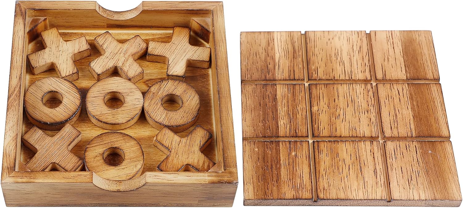 - High Quality: Crafted from safe and non-toxic, top quality wooden material, smooth surface, neatly cut, without sharp edges. Boards are made from natural wood, Featuring solid blond wood, better and safer than other brands. Tic Tac Toe 5 X and 4 O are included. Tumble Tower comes with 54 pieces wooden tumble blocks