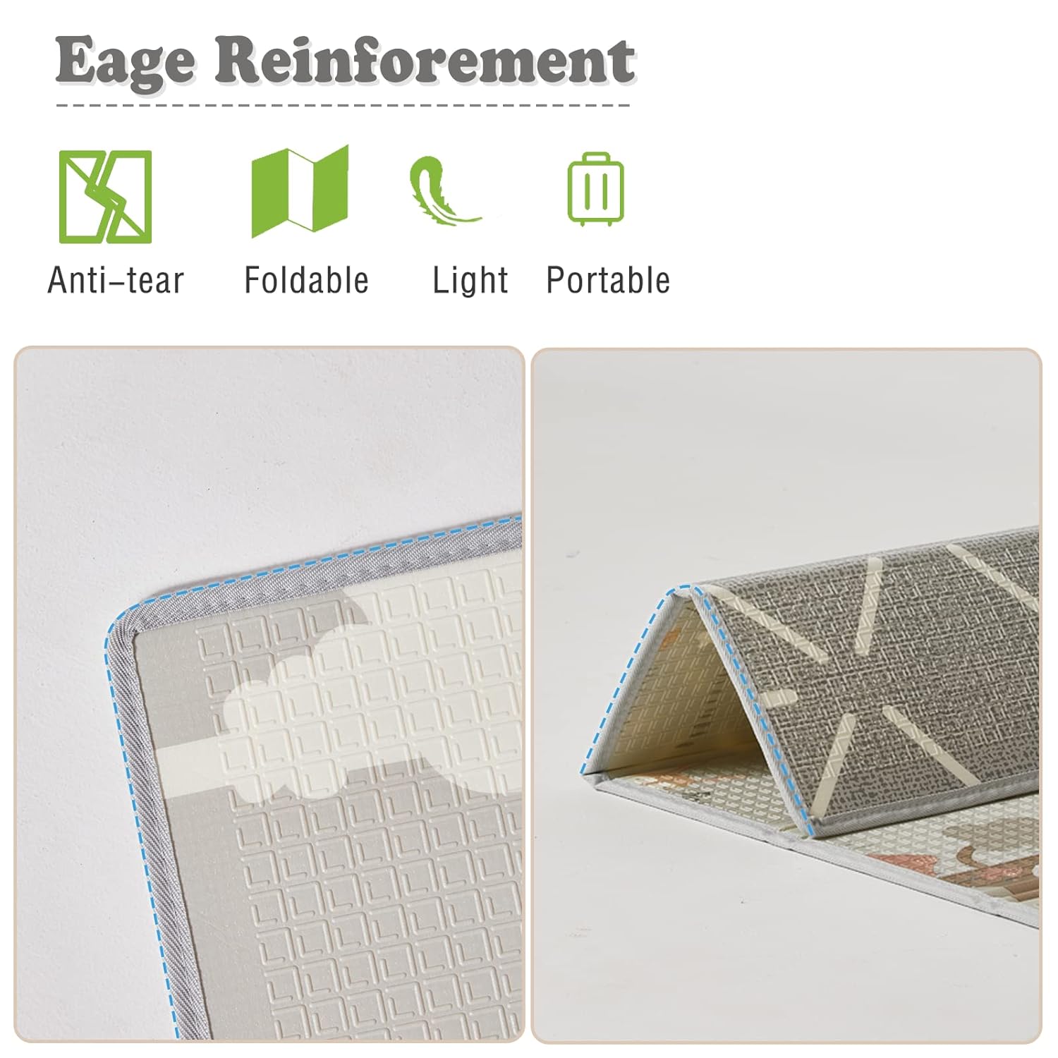 - More Sturdy: This baby play mat corners and edges are reinforced and sewn, making this baby play mat a bit more durable than the ones without the sewn edges
