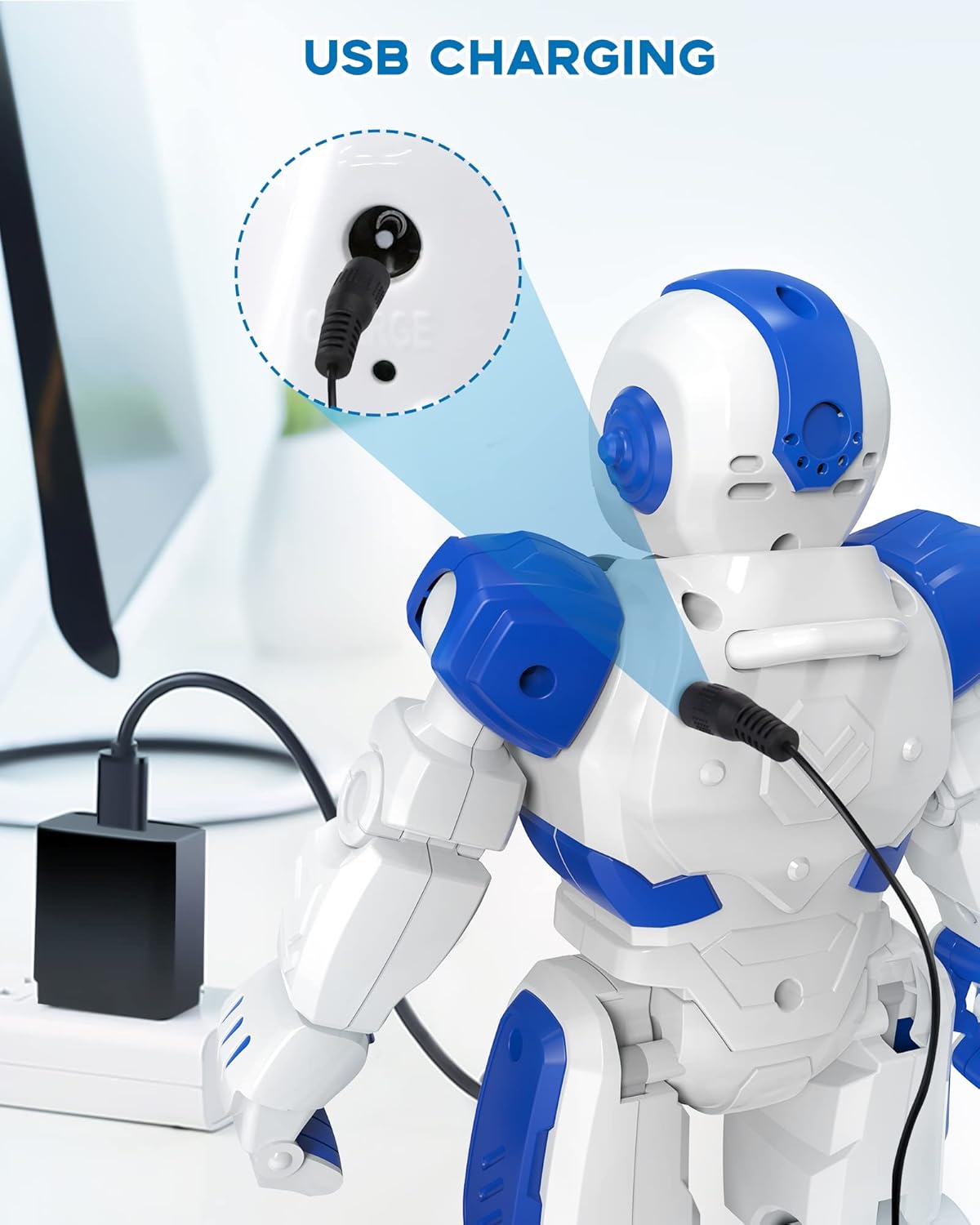 SONOMO Toys for 6-9 Year Old Boys, Girls RC Robot Gifts for Kids Intelligent Programmable Robot with 2.4GHz Sensing Gesture Control - Upgraded Version (Blue&White)