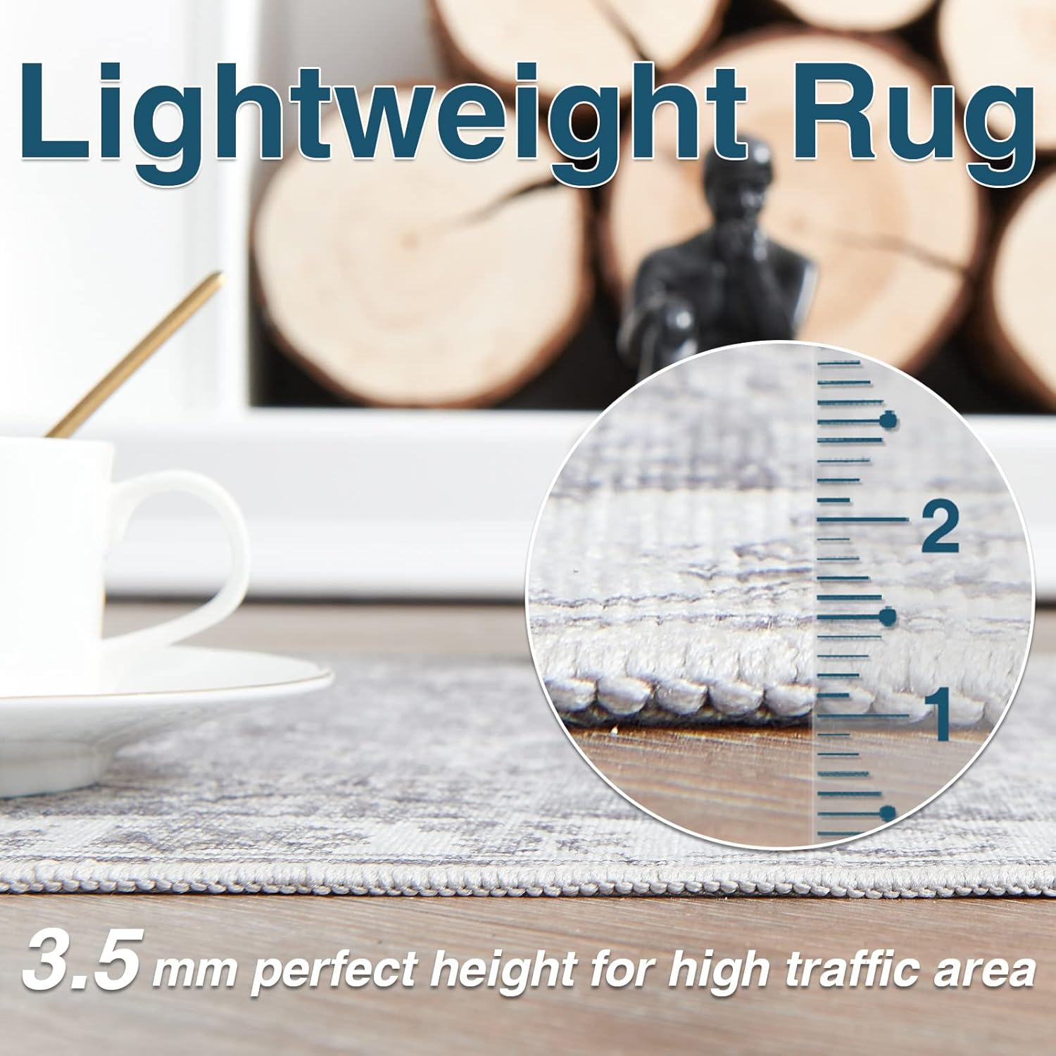 jinchan Hallway Runner Rug 3x7 Machine Washable Runner Rug Grey Vintage Floral Design Non-Slip Low Pile Ultra-Thin for Kitchen Laundry Room Bedroom Farmhouse (3‘x7',Grey)