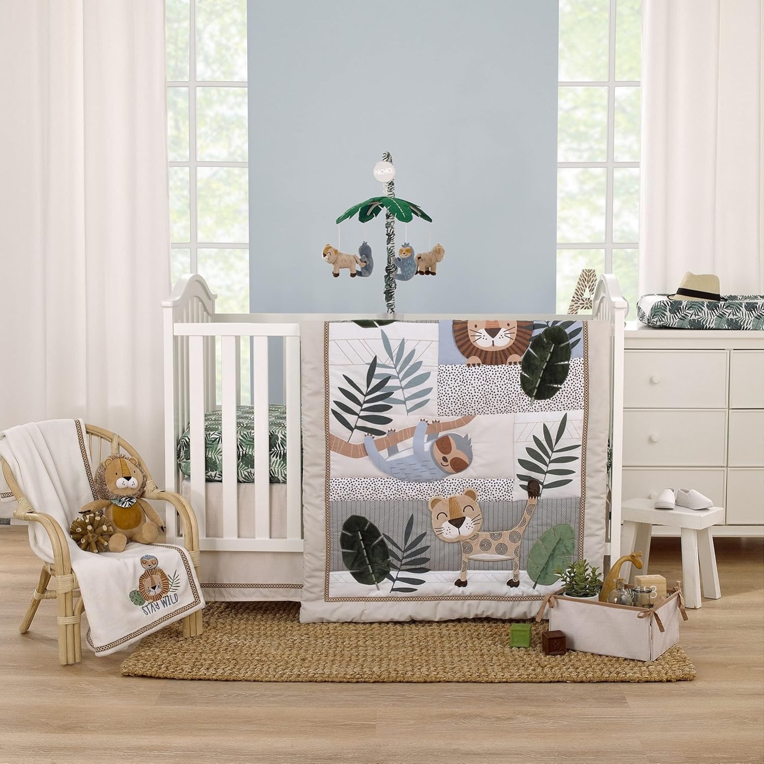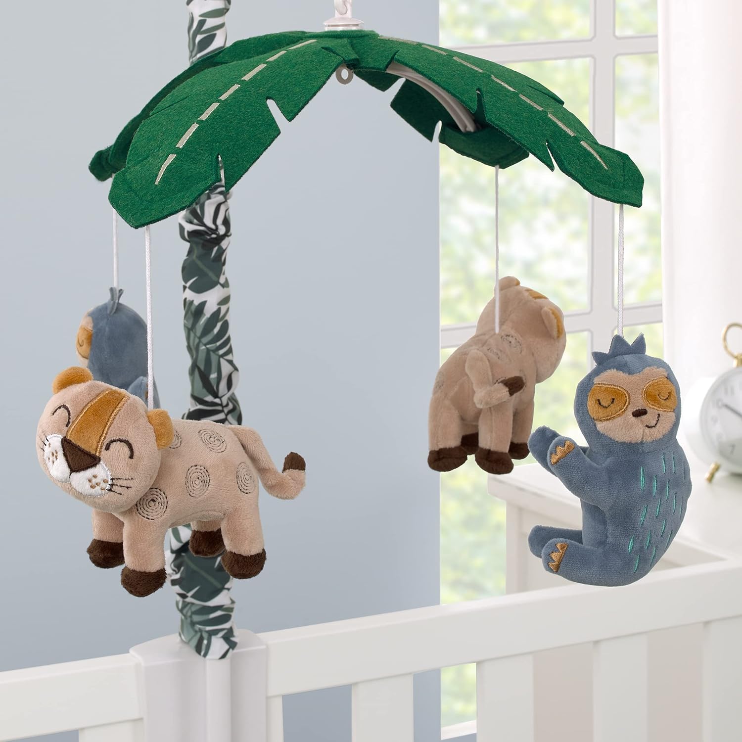 - This Musial Mobile features two spotted leopards and two sleepy sloths under a palm leaf canopy