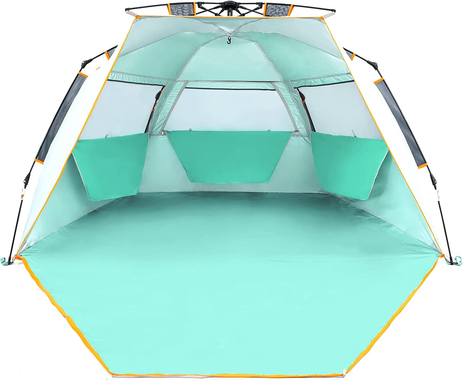 WolfWise 3-4 Person Easy Up Beach Tent UPF 50+ Portable Instant Sun Shelter Canopy Umbrella with Extended Zippered Porch, Mint Green