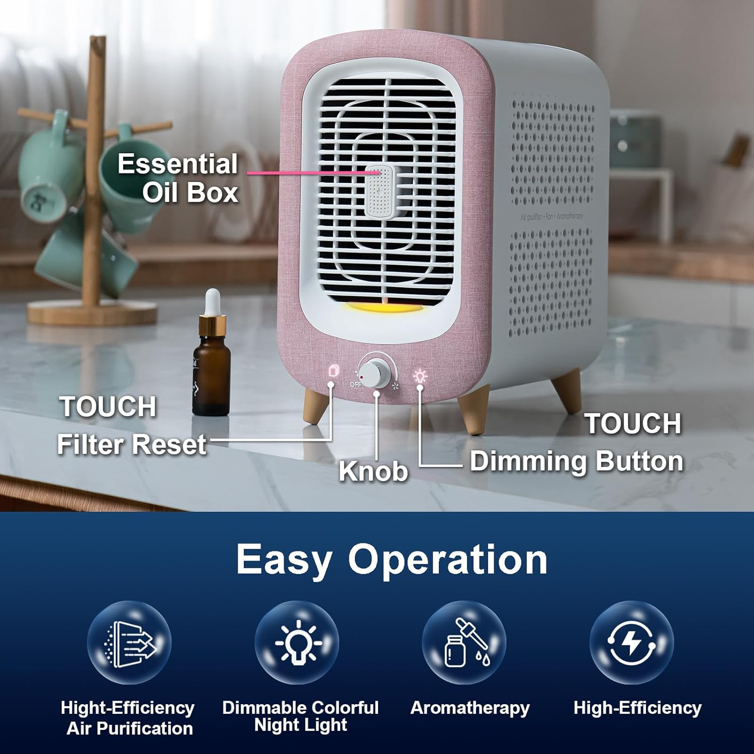 Jafanda Air Purifier for Home Bedroom 780sq ft, HEPA & Activated Carbon, Air Cleaner with Fragrance Sponge & Nightlight for Smoke, Allergies, Dust, Odor, VOC, Pet Dander, Pollen, Office, Desktop, Pink