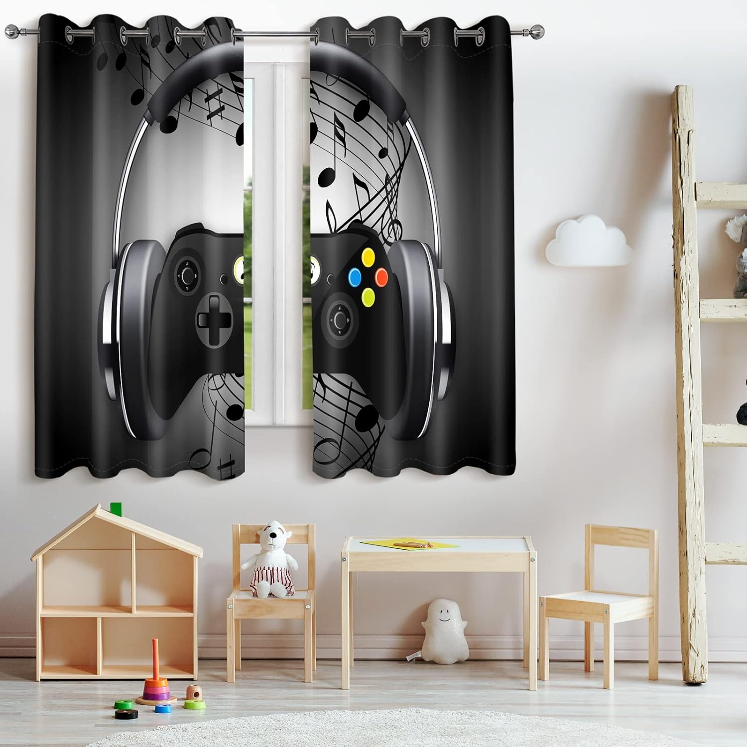Jekeno Game Controller Blackout Curtains for Kids Boys Teens Bedroom Colorful Video Game Gamer Gaming Gamepad Decor for Home Living Room Grommet Window Drapes 2 Panel Set, 52"x84"