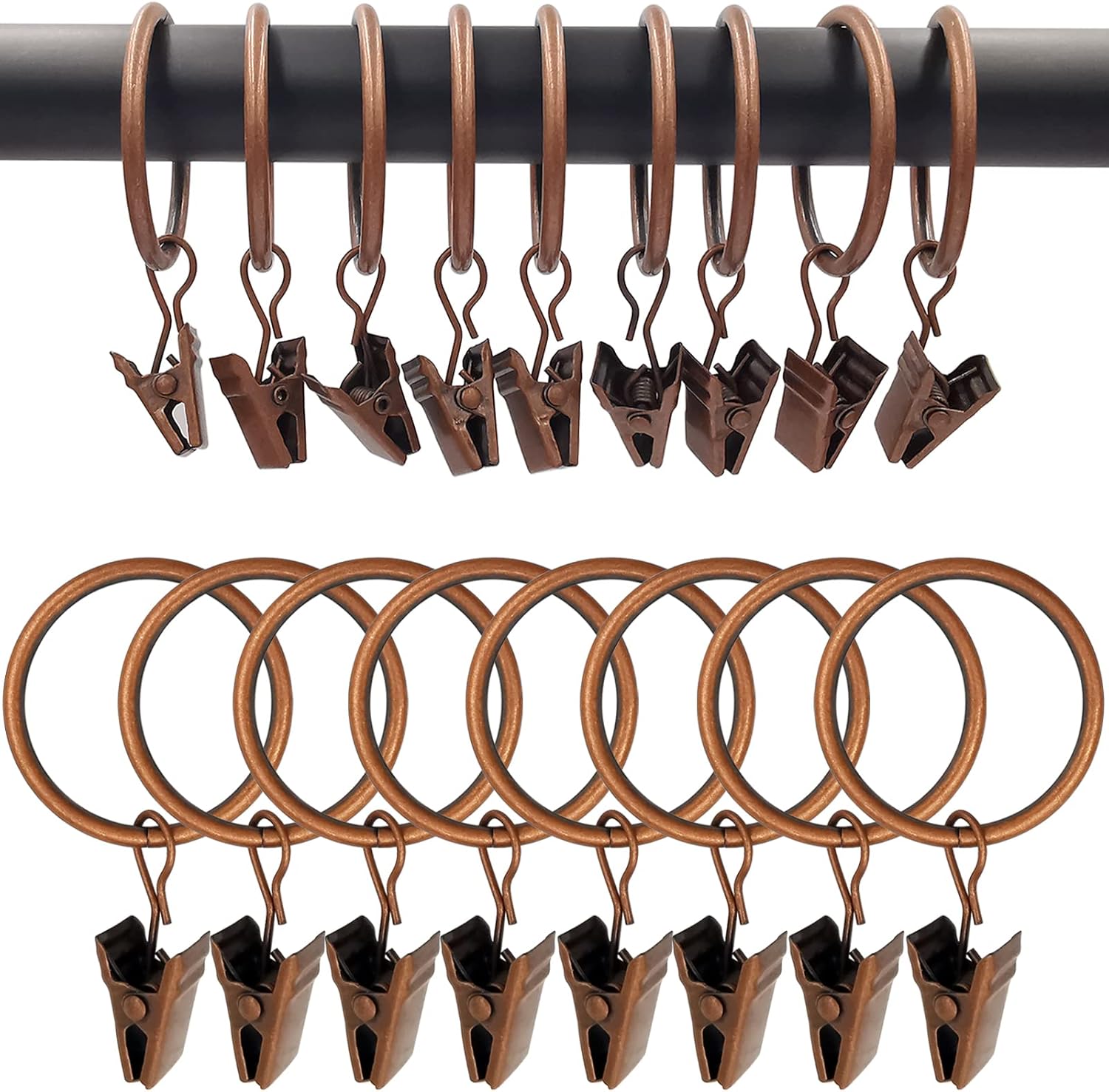 100 Pack Antique Copper Curtain Rings with Clips, Curtain Hooks Hangers Clip Rings for Hanging Drapes Bows Hat, Drapery Rings 1.26 in I D, Fits up to 1 in Diameter Curtain Rod.