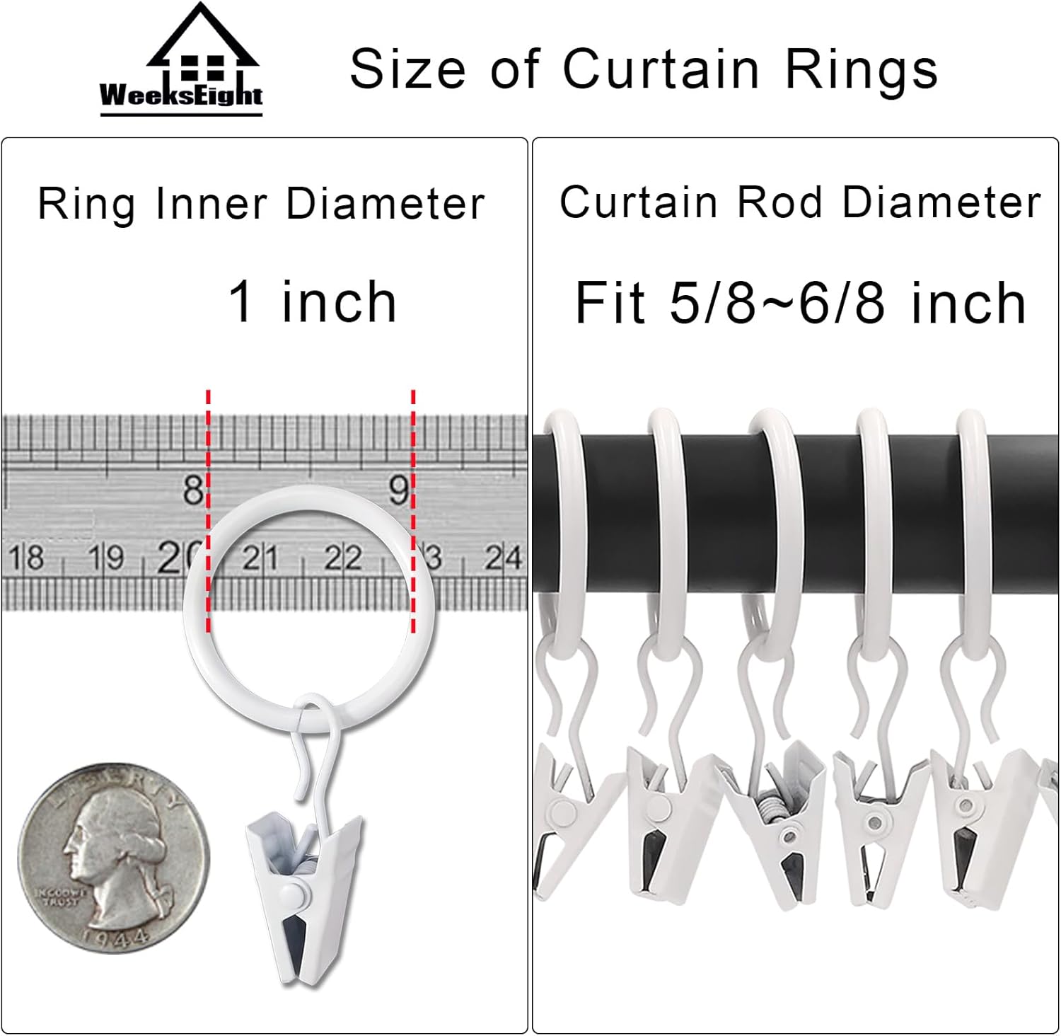 - 【Curtain Rings Slide Easily】Curtain rings eyelet inner diameter 1 in, drapery rings with clips for used in ones 1 in curtain rod and that’s the perfect size, the curtains slide easily, multiple times a day and function perfectly, make your life full of fun.