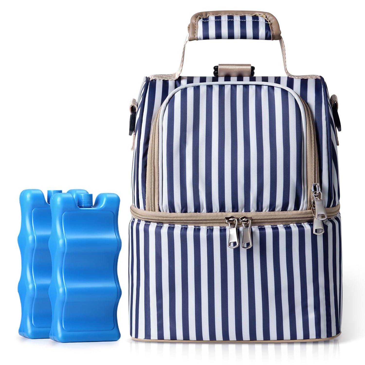 NCVI Breastmilk Cooler Bag with 2 Ice Pack, Breast Pump Bag with Cooler Fits 6 Bottles, Double Layer Breast Milk Baby Bottle Cooler Bag, for Travel, Nursing Mom Daycare, Work, Picnic (Stripe)