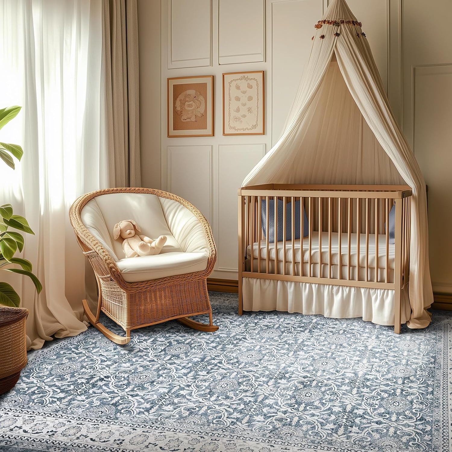 jinchan Floral Area Rugs 4x6 - Machine Washable Vintage Distressed Boho Design Throw Rug Stain Resistant Carpet Low Pile Ultra-Thin Non-Slip for Bedroom Living Room Dining Room Kitchen (4‘x6',Grey)
