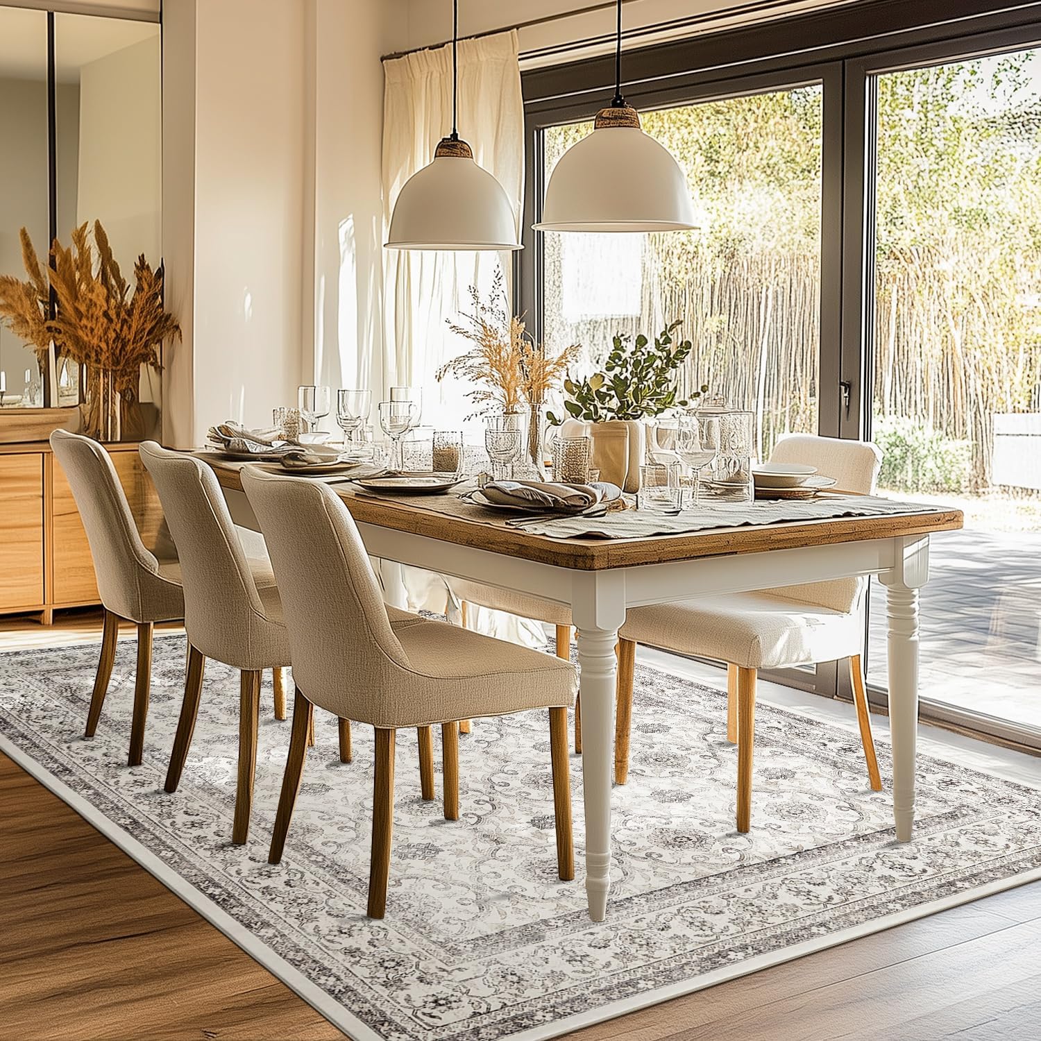 jinchan Floral 6x9 Area Rugs for Living Room - Machine Washable Vintage Distressed Boho Design Throw Rug Stain Resistant Carpet Low-Pile Thin Non-Slip for Bedroom Dining Room Nursery (6‘x9',Beige)