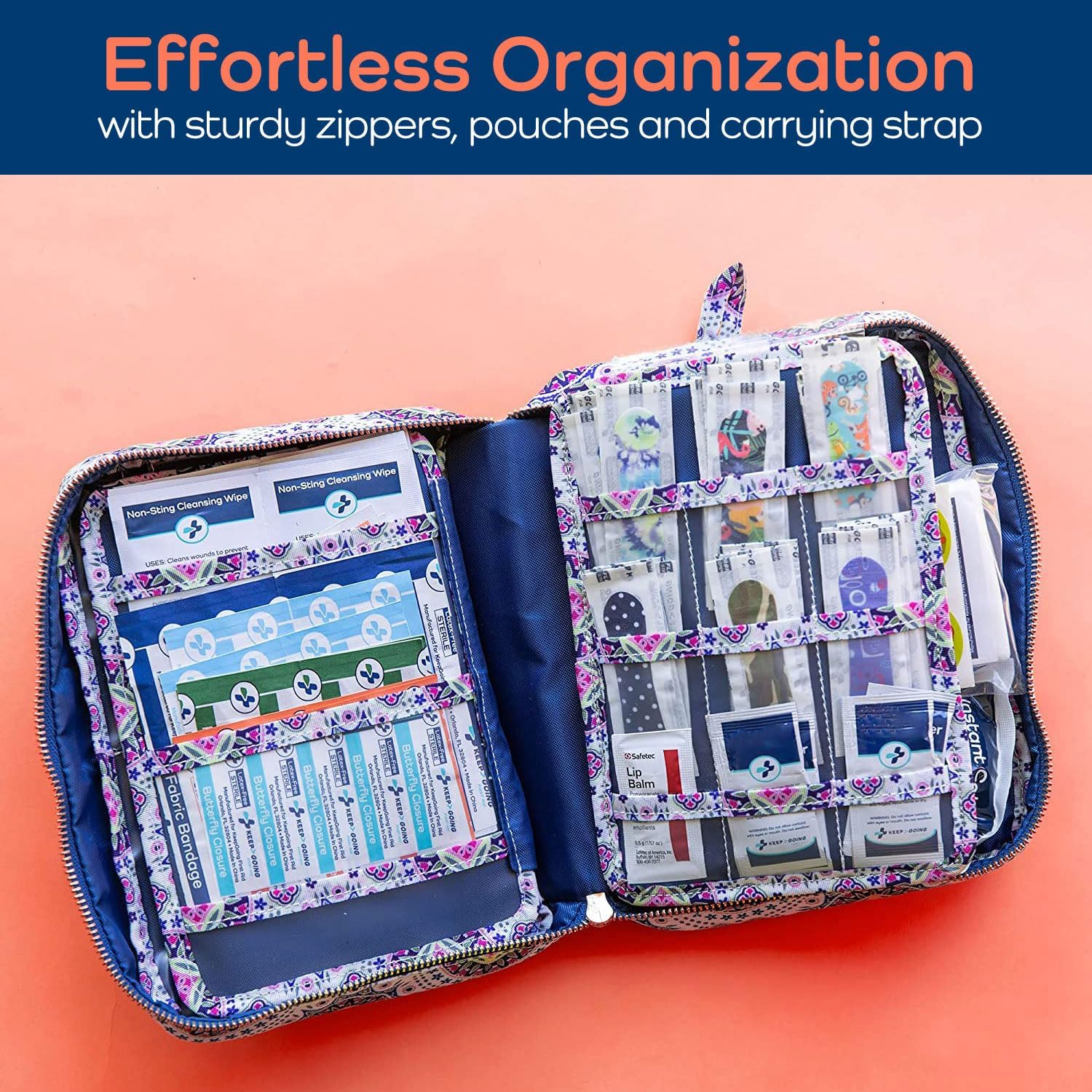 KeepGoing Large Home First Aid Kit for Kids – 270 Pc. for Car, Home, Dorm, & Boat with Latex-Free Bandages – 10 x 7 x 3.5 in. Travel First Aid Kit (Boho)