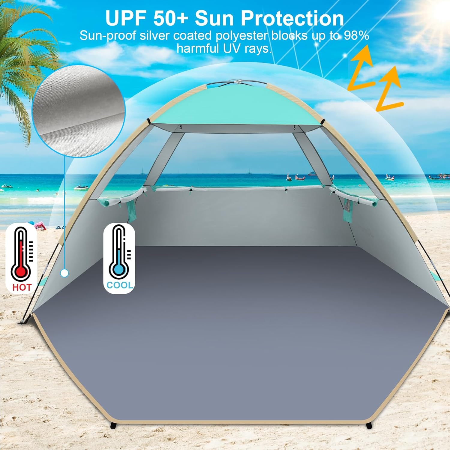 Gorich Beach Tent Sun Shelter for 3/4-5/6-7/8-10 Person with UPF 50+ UV Protection, Lightweight & Easy Setup Beach Shade Canopy, Portable Beach Shade Tent Beach Cabana