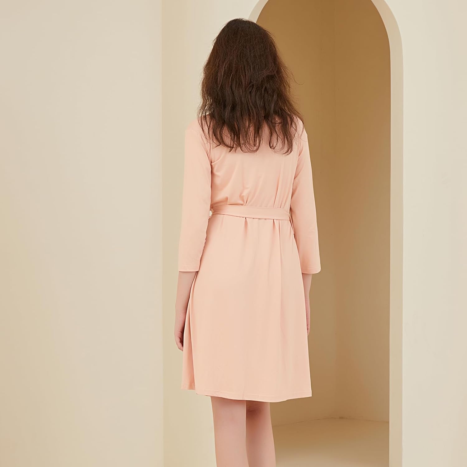 Galabloomer Maternity Robe and Baby Receiving Blanket, Matching Mommy Labor Delivery Robe and Swaddle Set (l, pink sand)