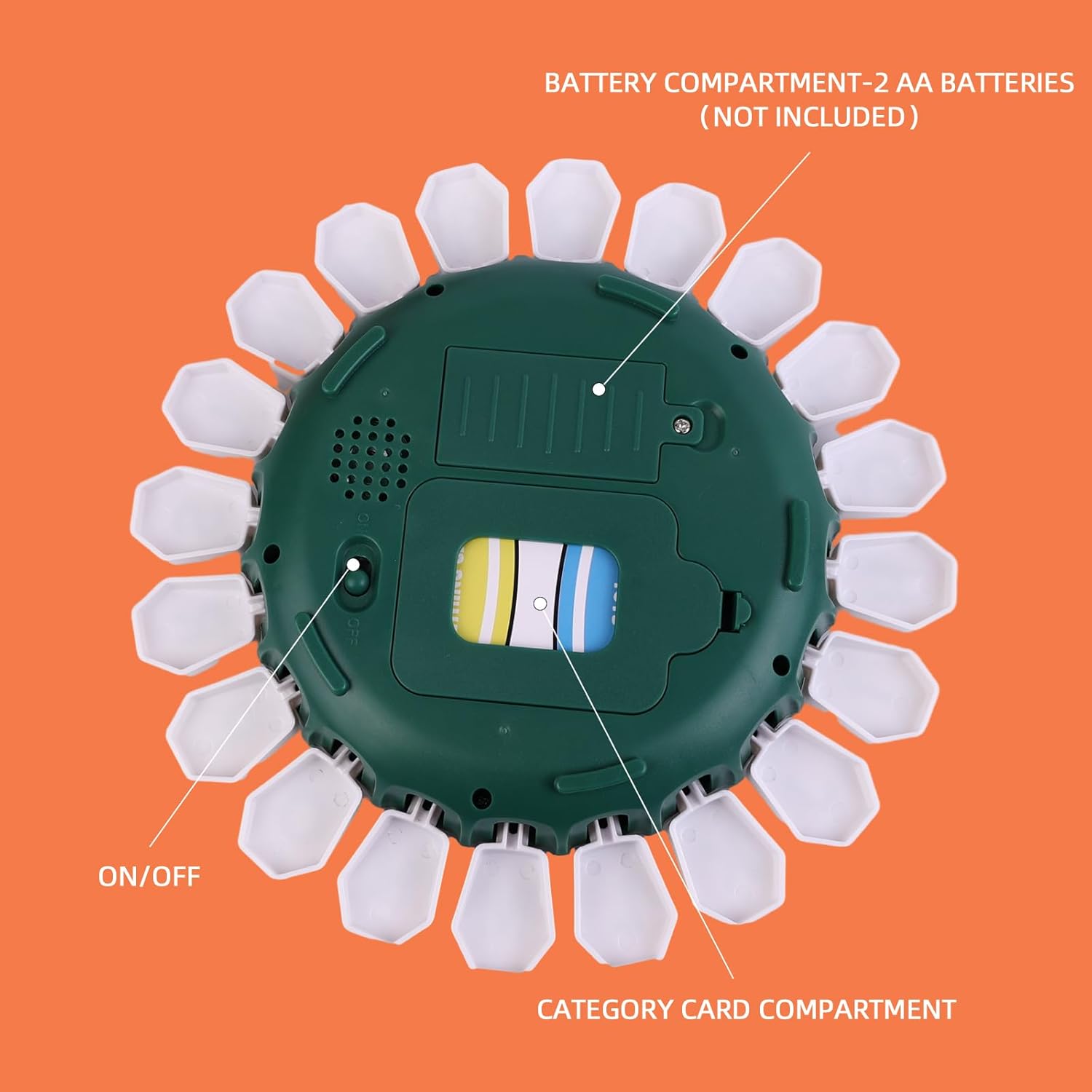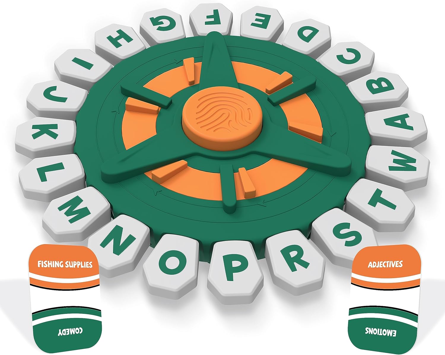 - Included: 36 double-sided Category cards, each featuring 4 categories (144 different categories in total) and the Touch Activated Press & Play TAP 2 WIN Wheel.