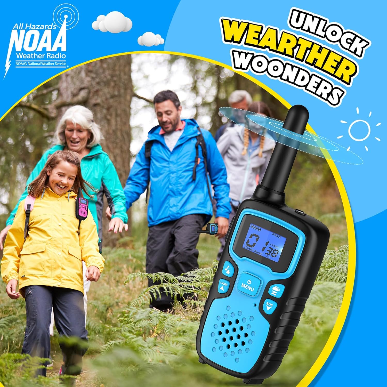 Wishouse Walkie Talkies for Kids Rechargeable Long Range,Xmas Birthday Gift for 4 5 6 7 8 9 Year Old Boys Girls,Hiking Gear Camping Games Cool Toys with NOAA,SOS Siren,Lamp,Lanyards,Easy to Use,4 Pack