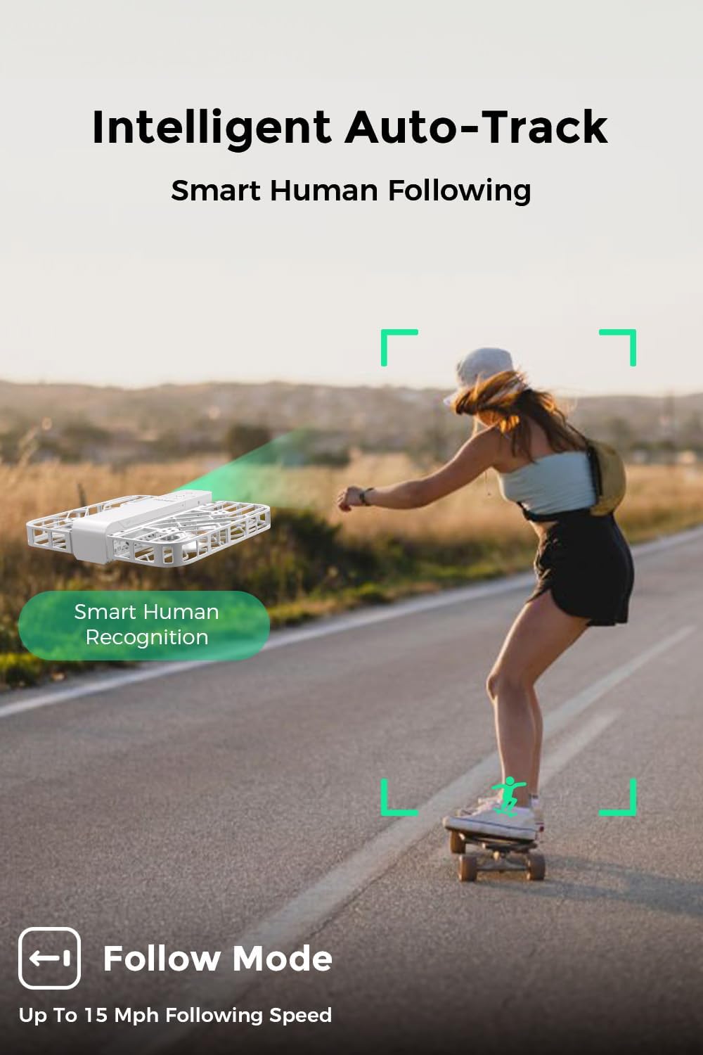 - Intelligent Follow-Me Camera: Harnessing advanced tracking algorithms and a following speed of up to 15 mph, the HOVERAir follow-me self-flying drone becomes your intuitive cameraman, seamlessly tracking your every move. Ideal for cycling, skateboarding, and various sports, it effortlessly captures breathtaking moments, ensuring you're always at the center of the action.