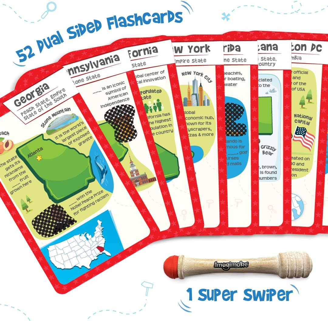 - ELEVATE YOUR LEARNING EXPERIENCE WITH US FLASH CARDS - Explore all 50 states through engaging quizzes, uncover hidden facts using our captivating SWIPE & REVEAL feature, and unlock magic patch surprises with this exciting kids game. Perfect for kids ages 8-12, this educational journey takes you to American history, geography, and culture, allowing players to master over 750 fascinating facts. Get ready to play the ultimate game of learning, combining the thrill of playing cards.