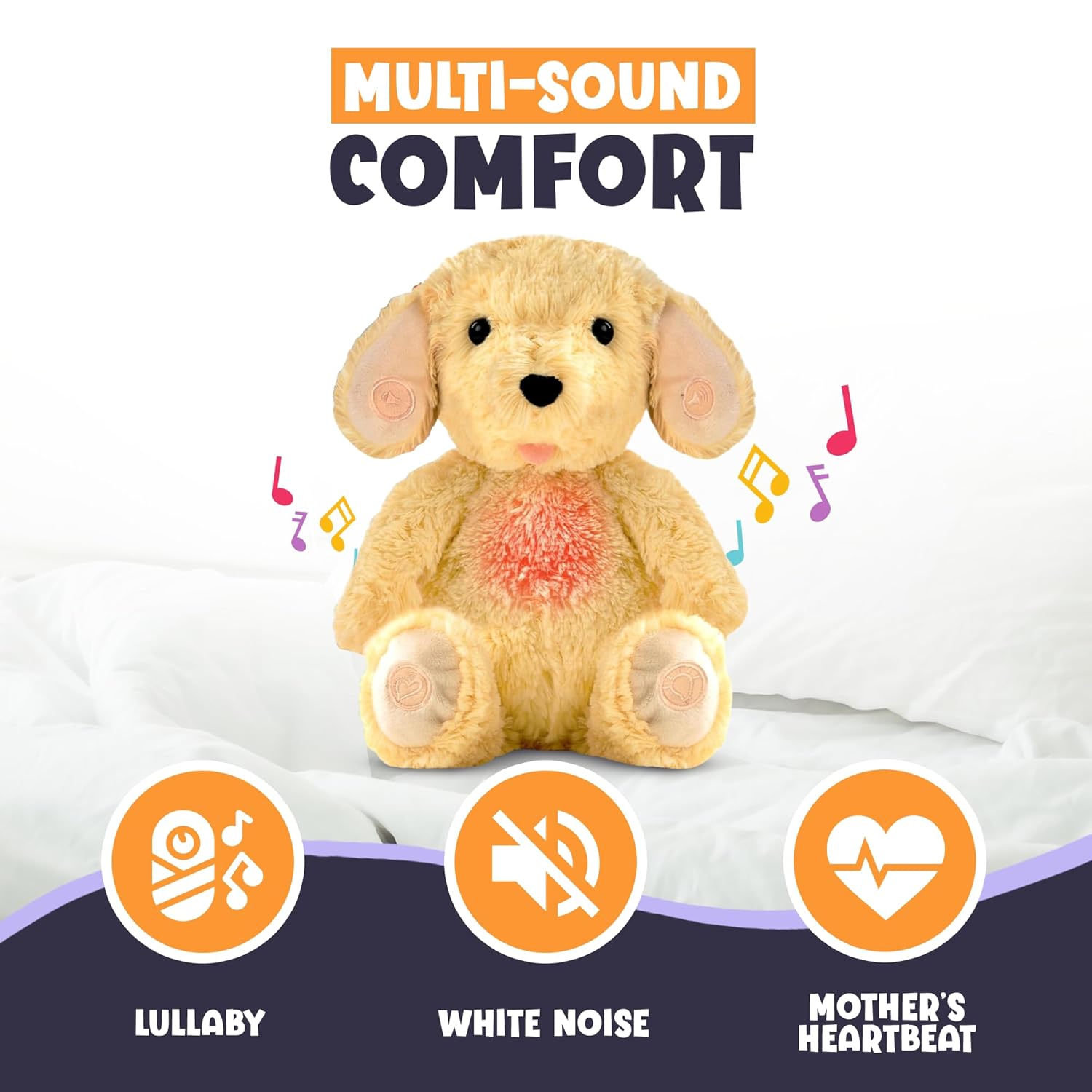 Gemma Joy Bedtime Baby Soothers for Sleep, Cry Activated Heartbeat Stuffed Animal for Baby, Newborn, Calming Light, Lullaby Music, White Noise, Shush and Mother’s Heartbeat - (Puppy, Rechargeable)