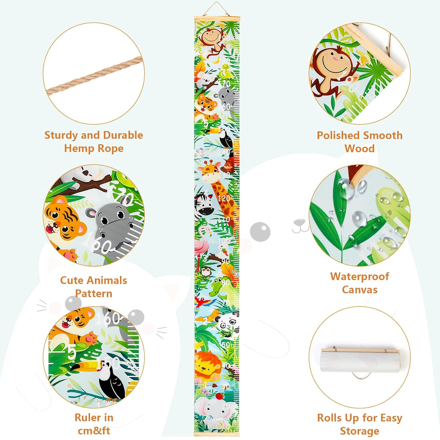 - Material: Animal Height measuring chart is made of canvas and wood, absolutely high quality, non-toxic, no peculiar smell and durable to use, you can use it without worry.