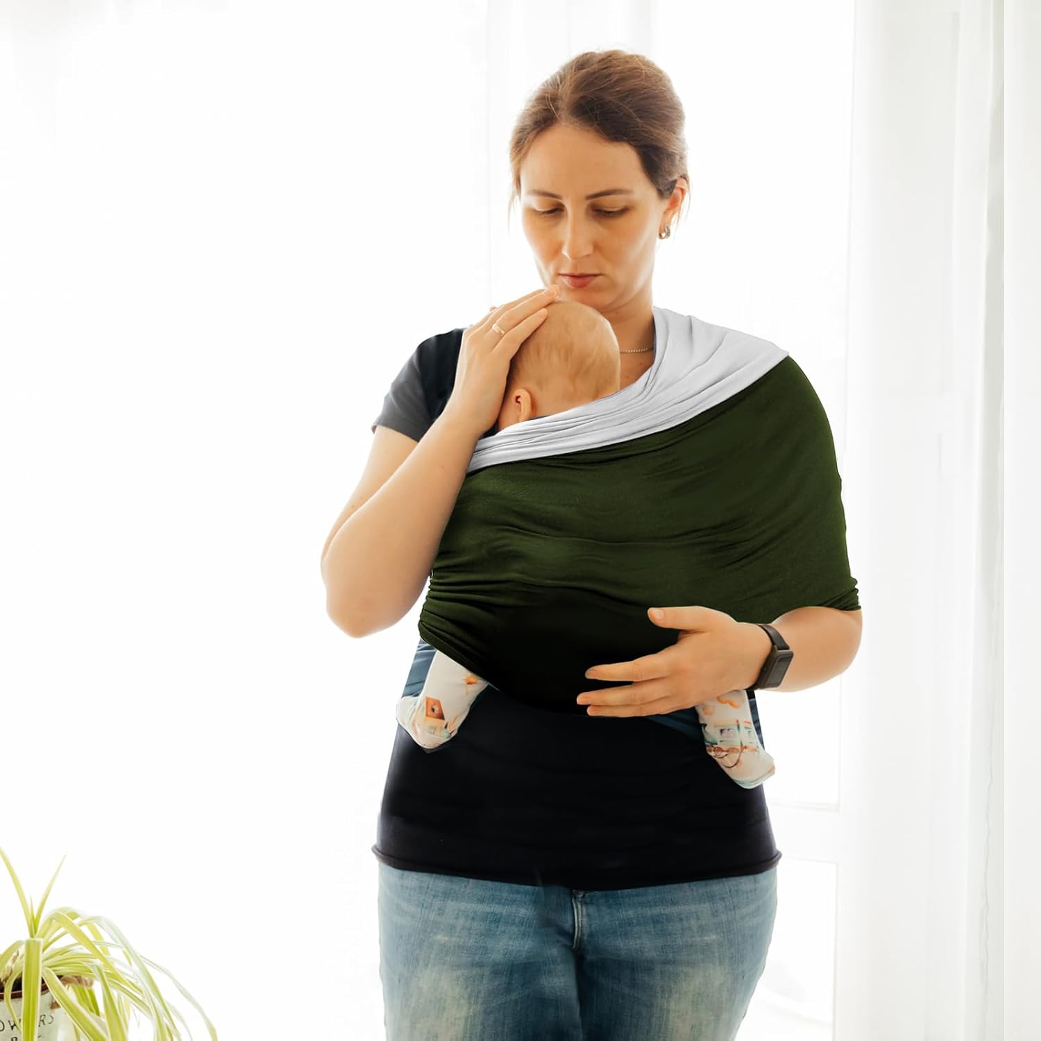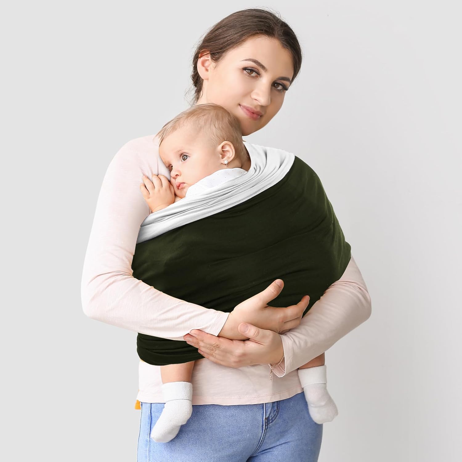 - 【Hands-Free & Easy Use】Our carrier is in a simple design without complicated straps or buckles for easy use. Parents can gentle hold the little one in the chest, an environment similar to the womb, which gives them a greater sense of security. Likewise, it also helps them sleep better. By this way, this baby wrap carrier lets you move, shop, and work freely.