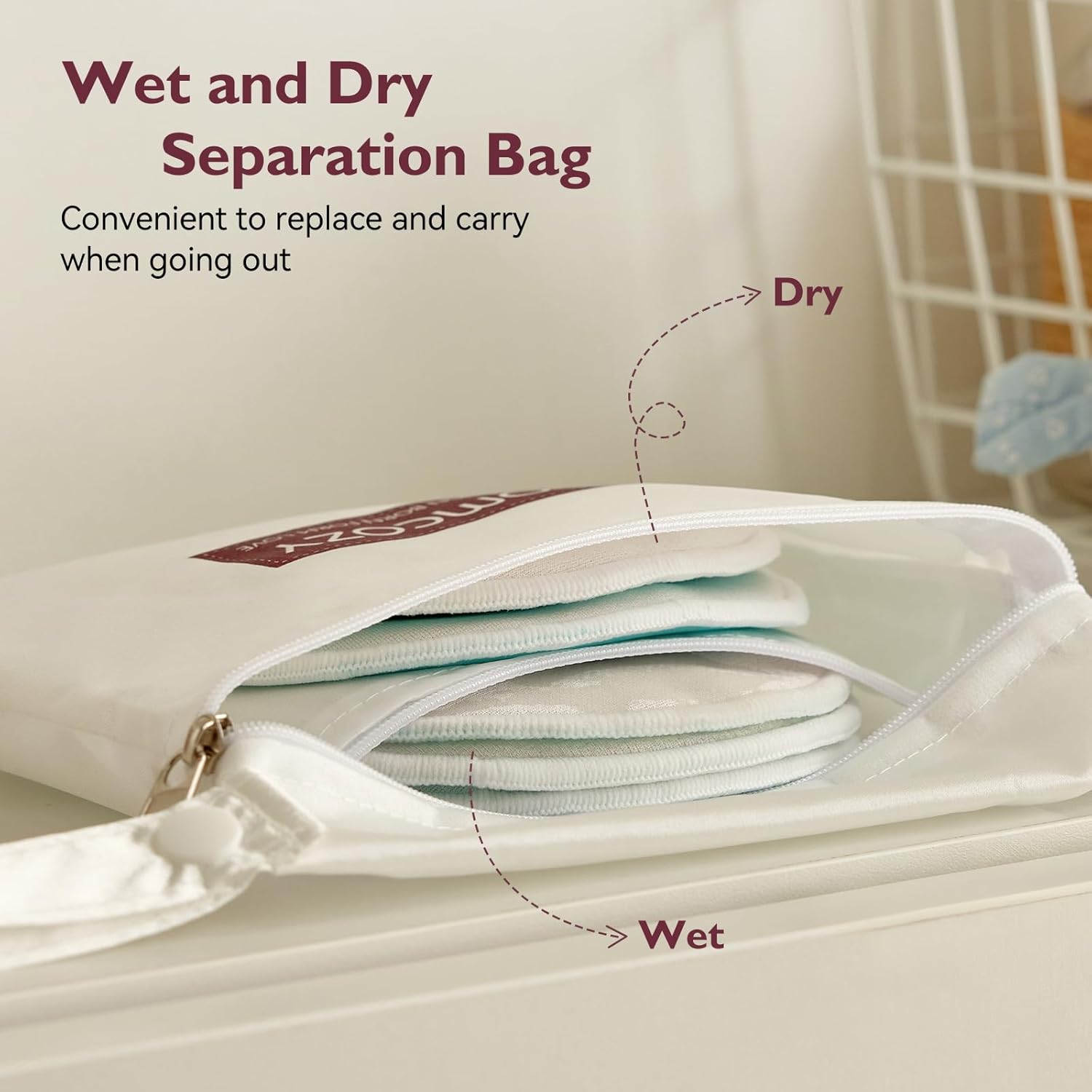 Momcozy Reusable Nursing Pads, Innovative Use of One Way Moisture-Wicking Fabric & 4 - Layer Washable Breast Pads, Super Absorbent and Large Capacity, 6 Pack + Wet and Dry Separation Bag + Wash Bag