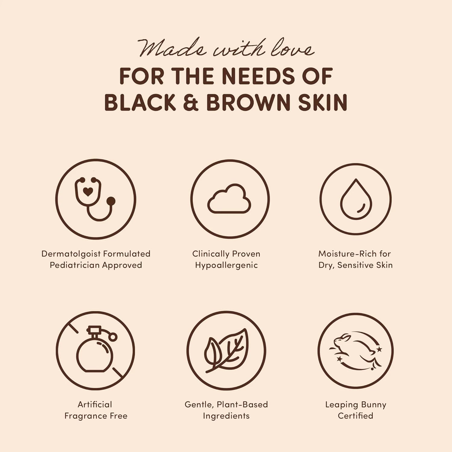 - PLANT-BASED INGREDIENTS: Our team of Black professionals - a dermatologist, pediatrician and chemist, study and select ingredients to nourish dry, sensitive skin. No mineral oil, petrolatum, lanolin, synthetic fragrances, parabens, PEGs, or phthalates